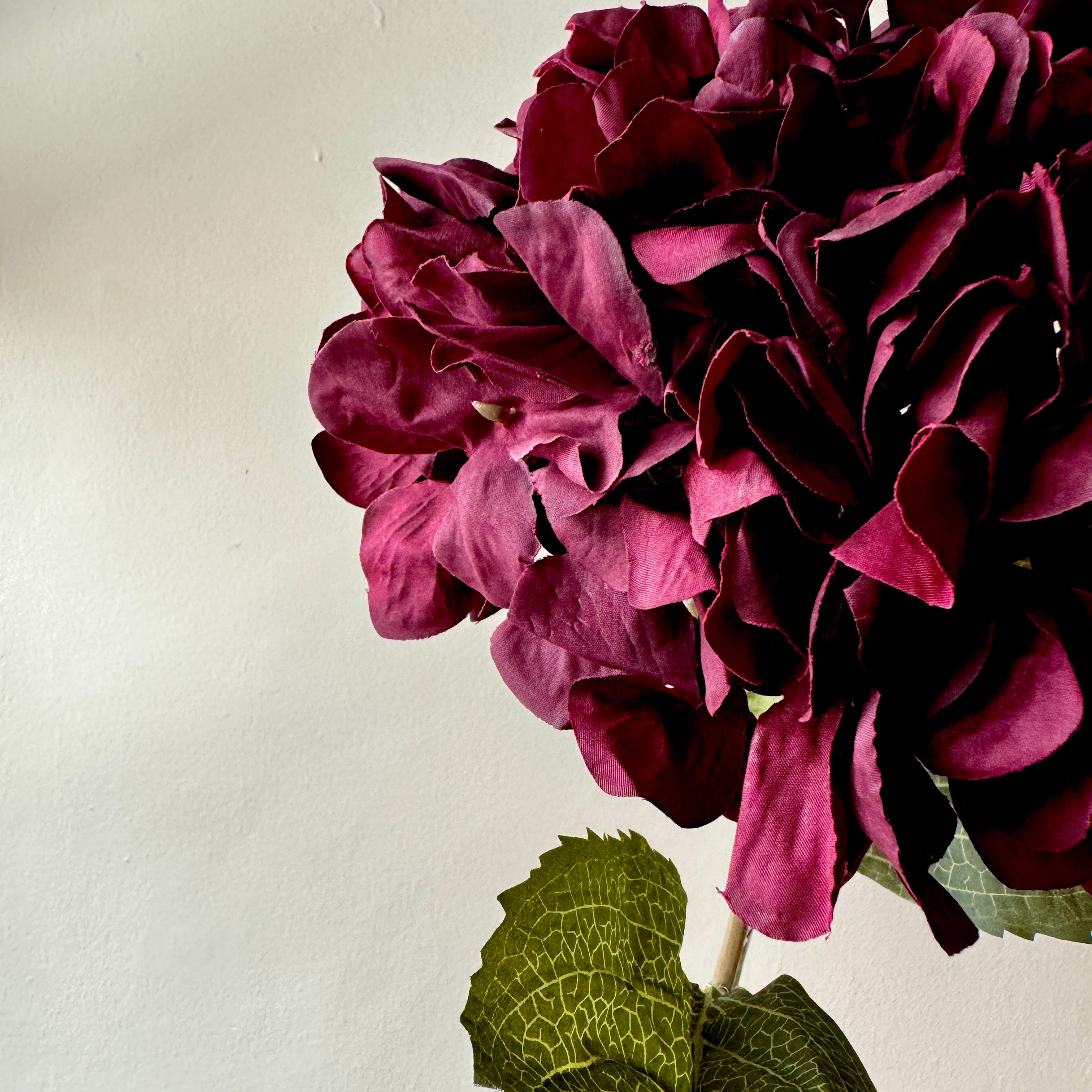 This rich mahogany red hydrangea stem measures approximately 83cm x 23cm