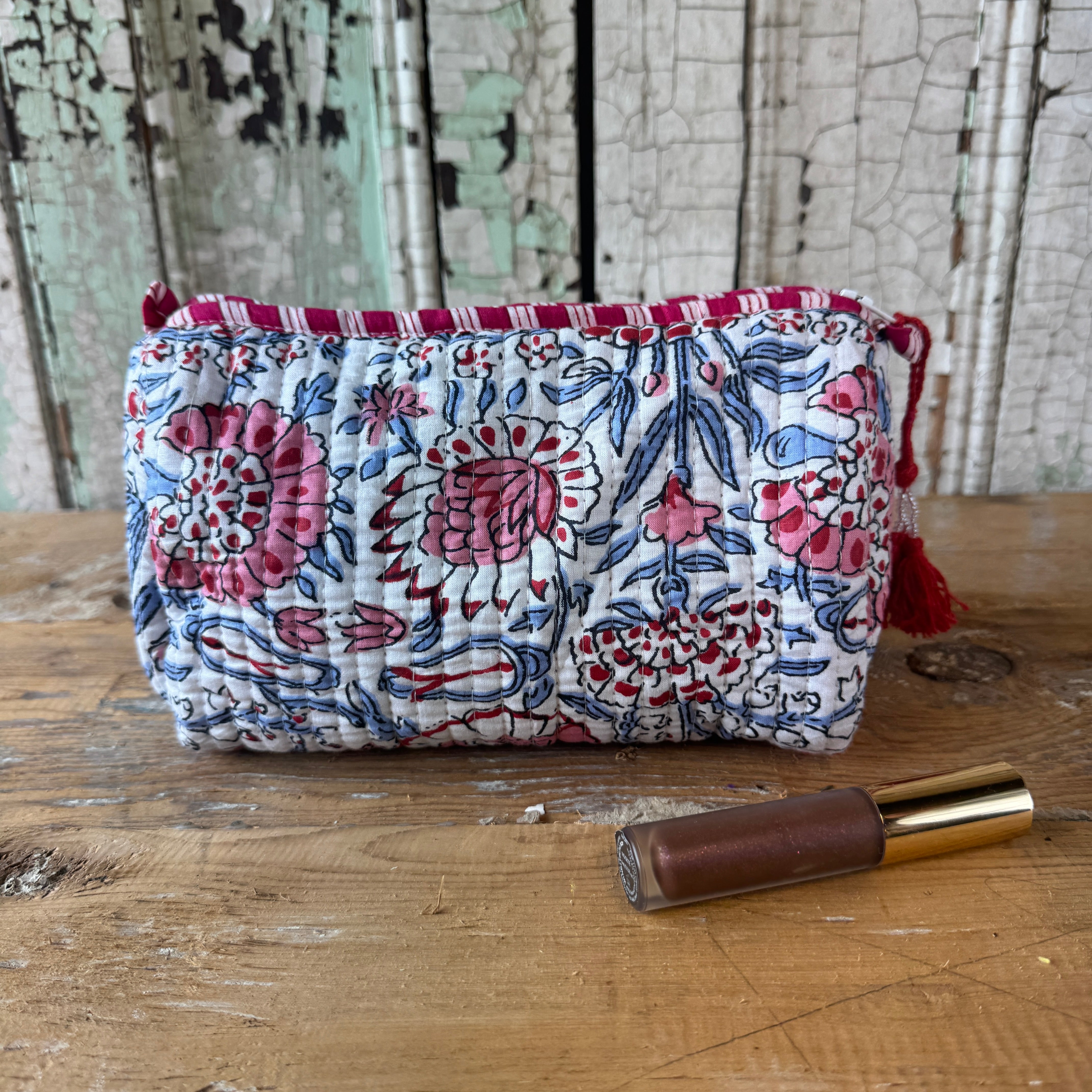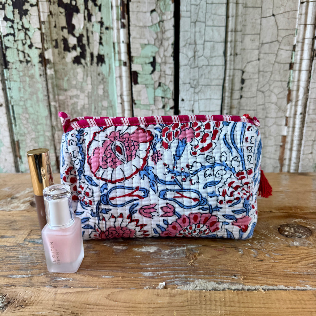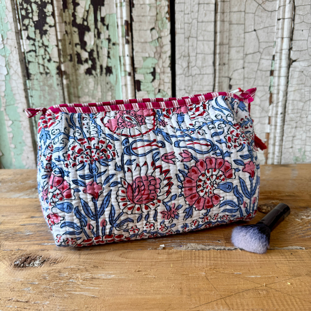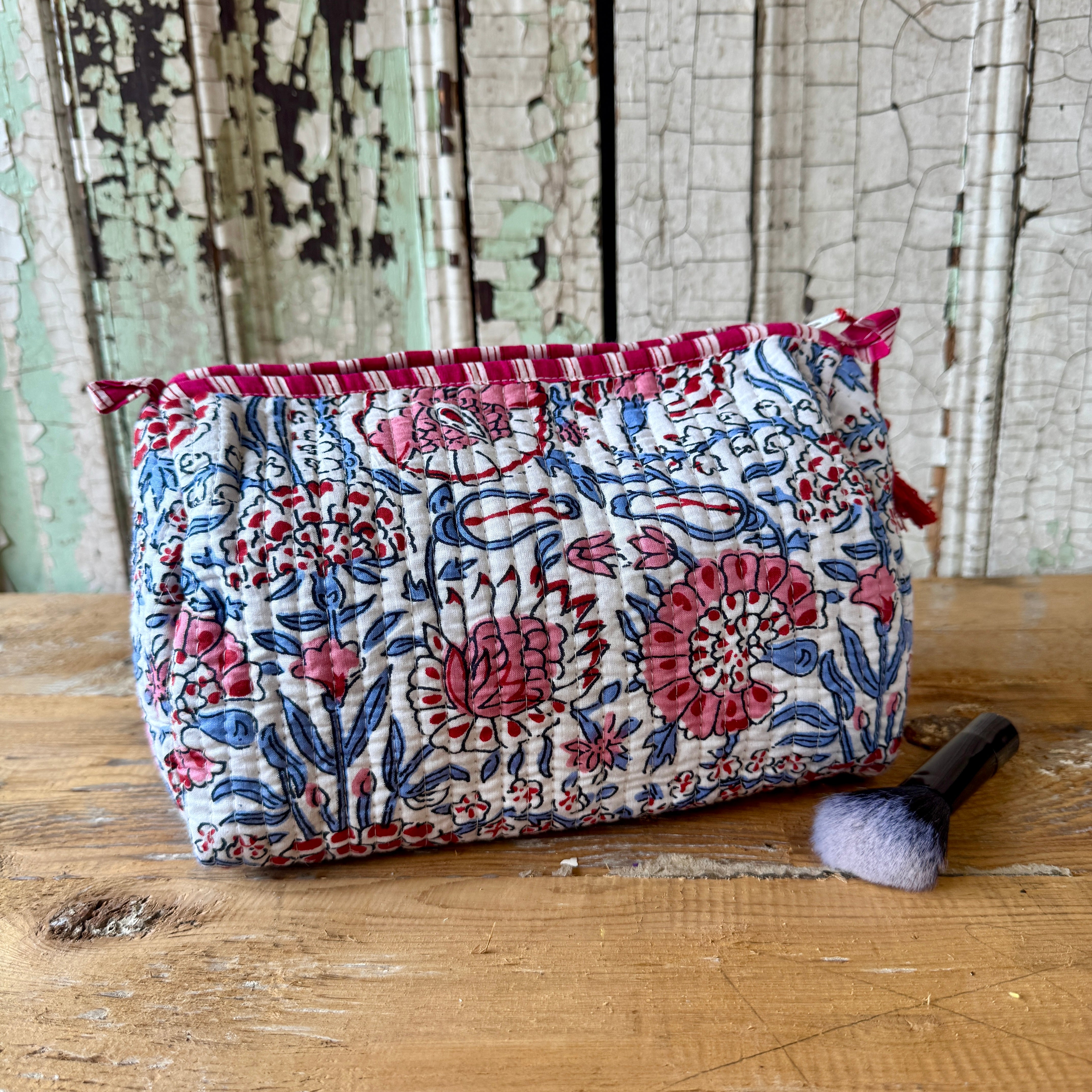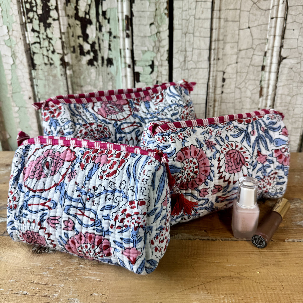 Each quilted piece individually unique, made using traditional block printing in India.