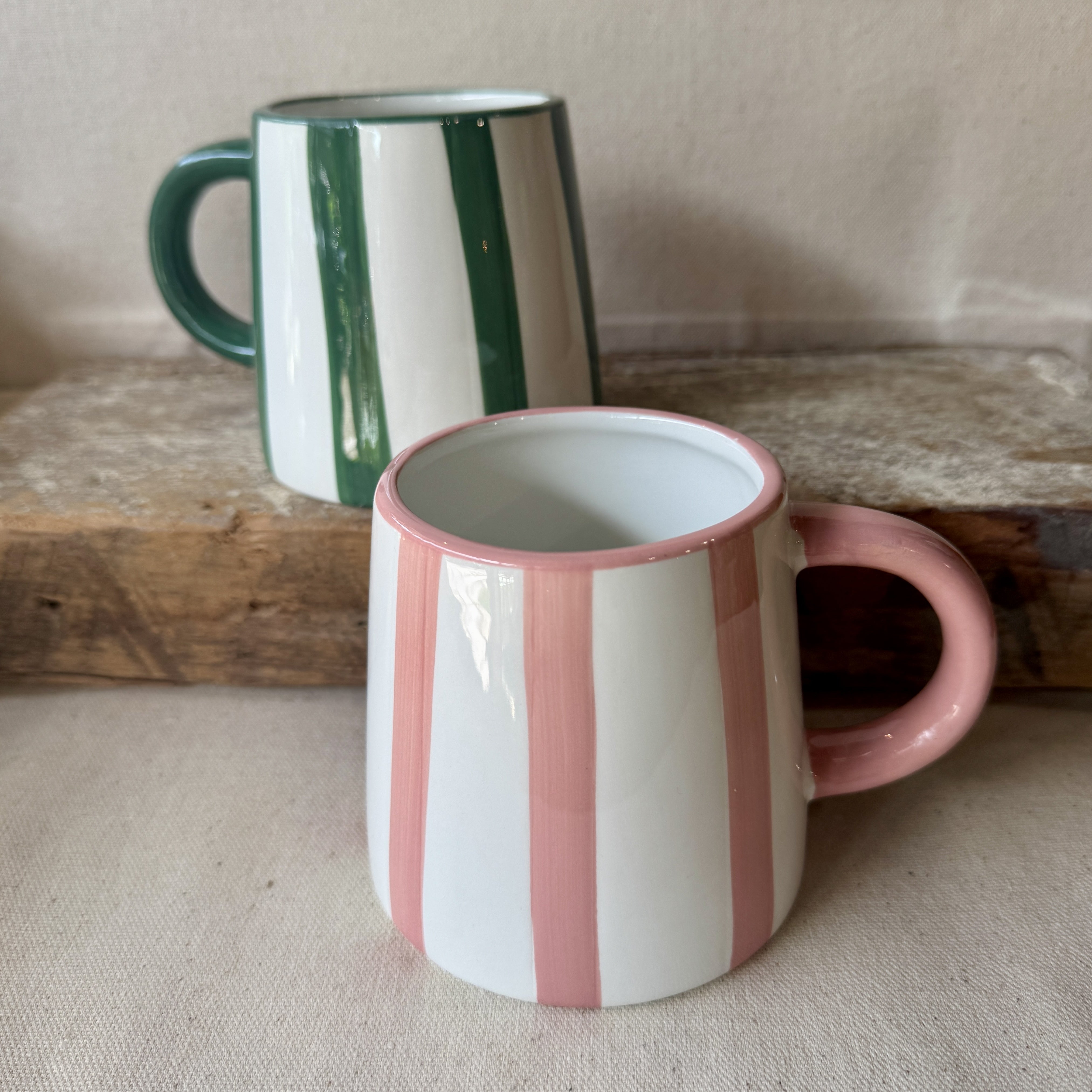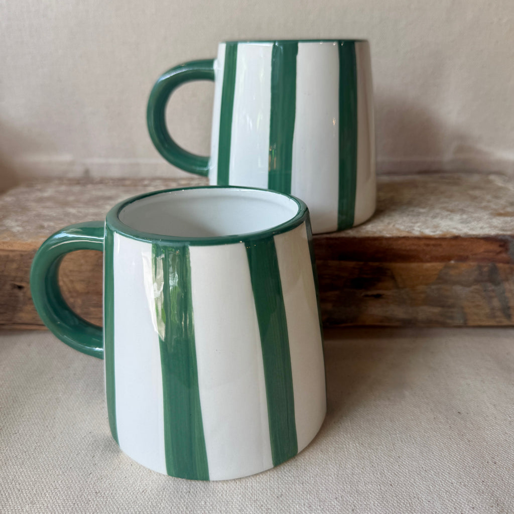 Add a touch of charm to your kitchen with this beautifully crafted ceramic mug, featuring a timeless stripe pattern. Its sturdy shape and easy-grip handle make it perfect for everything from your first coffee of the day to a soothing evening tea.