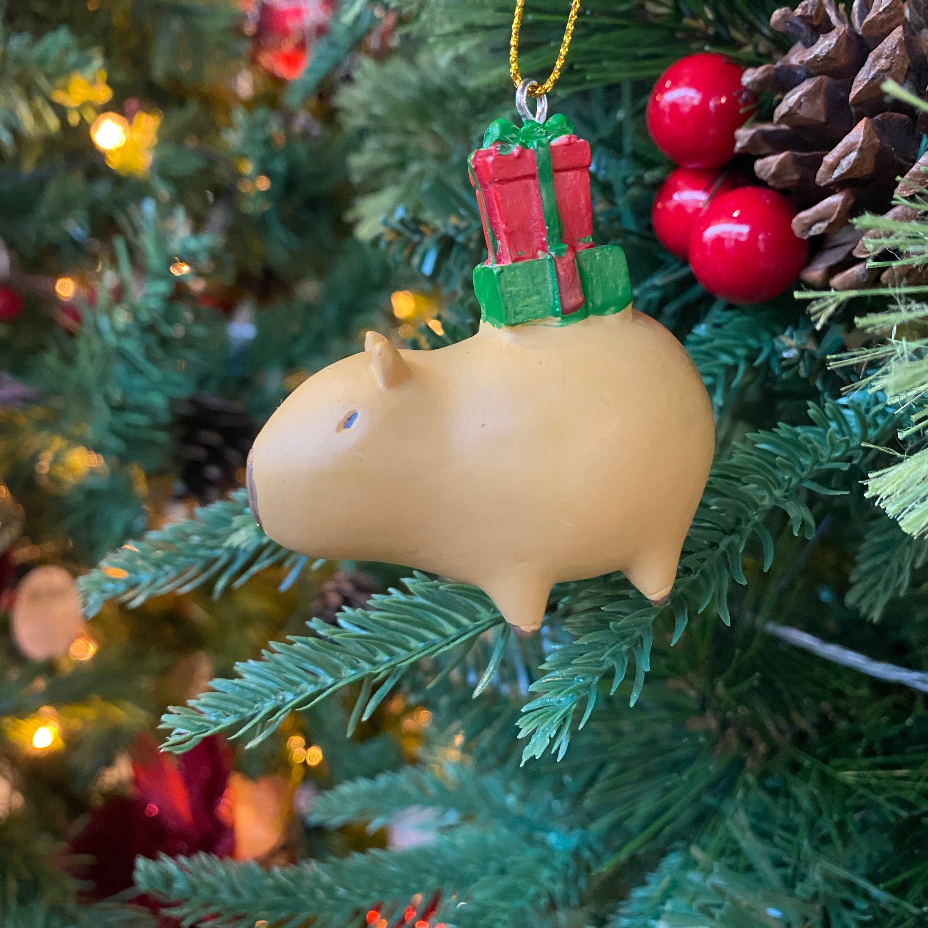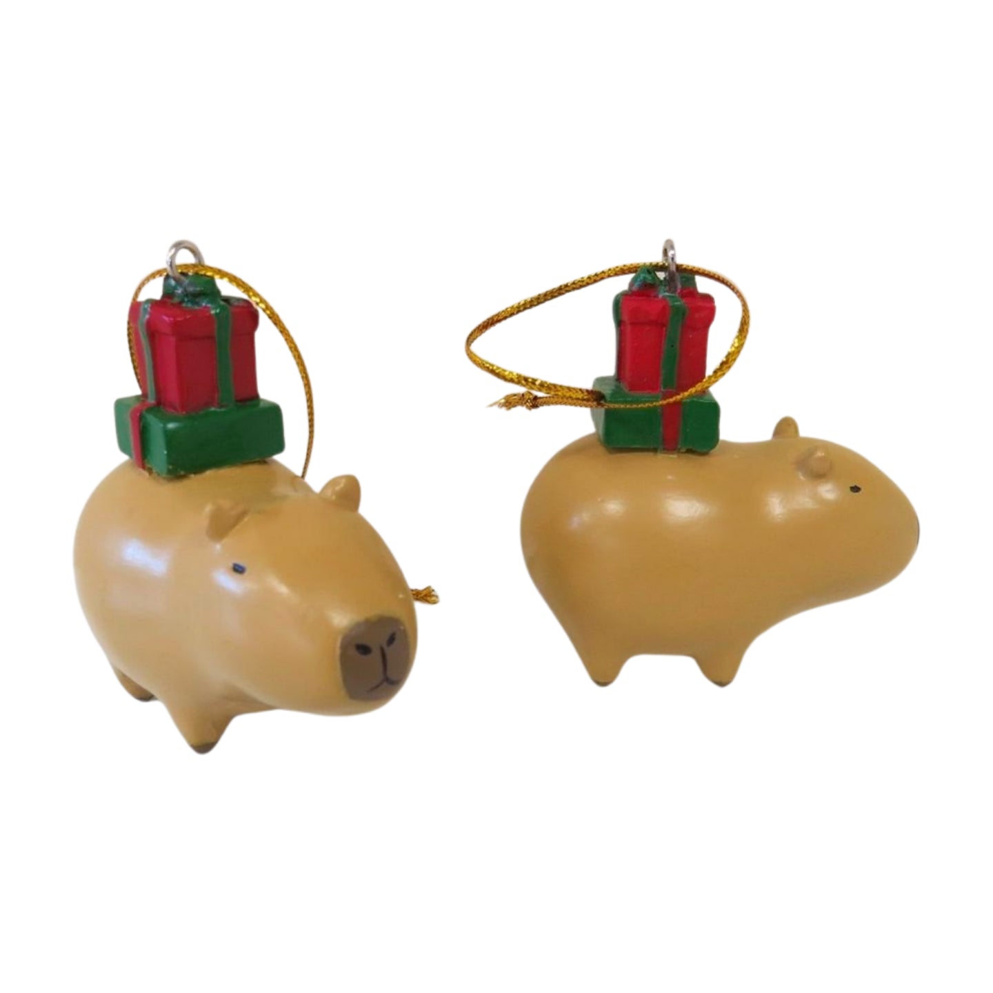 This adorable festive capybara is made from ceramic and carries a cheerful stack of brightly wrapped gifts on its back ready to spread some holiday joy! This is the perfect decoration for anyone who loves something fun and different.