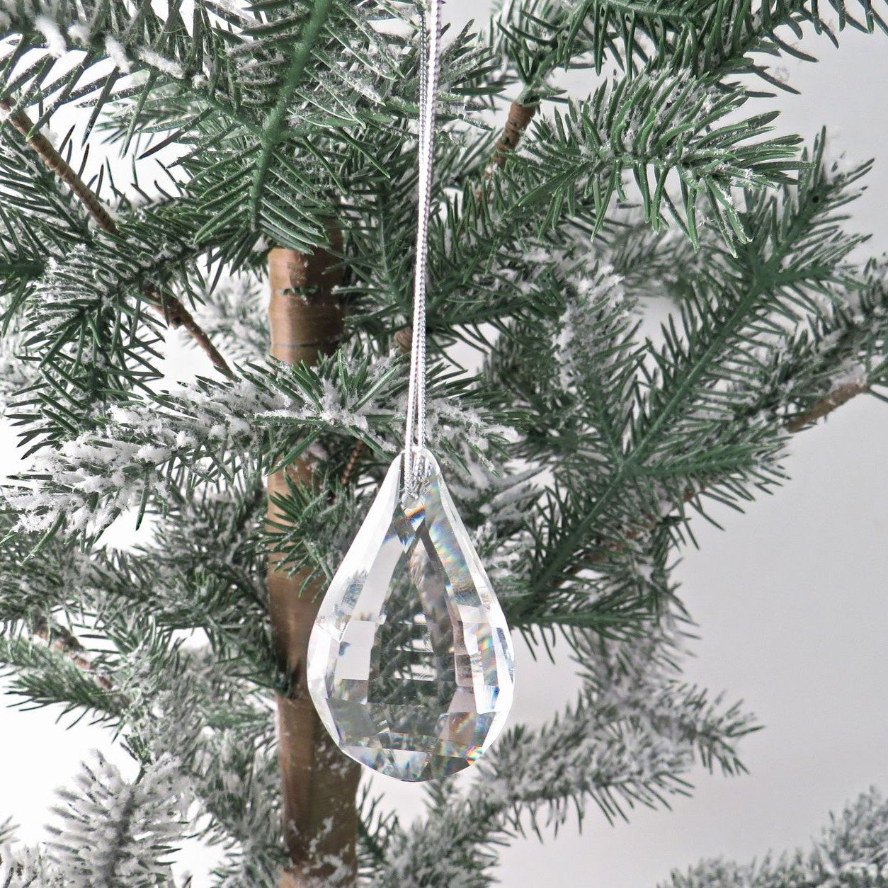 Hanging Tree Dec - Faceted Teardrop, 5cm. This elegant Christmas bauble is designed to catch and reflect light beautifully.