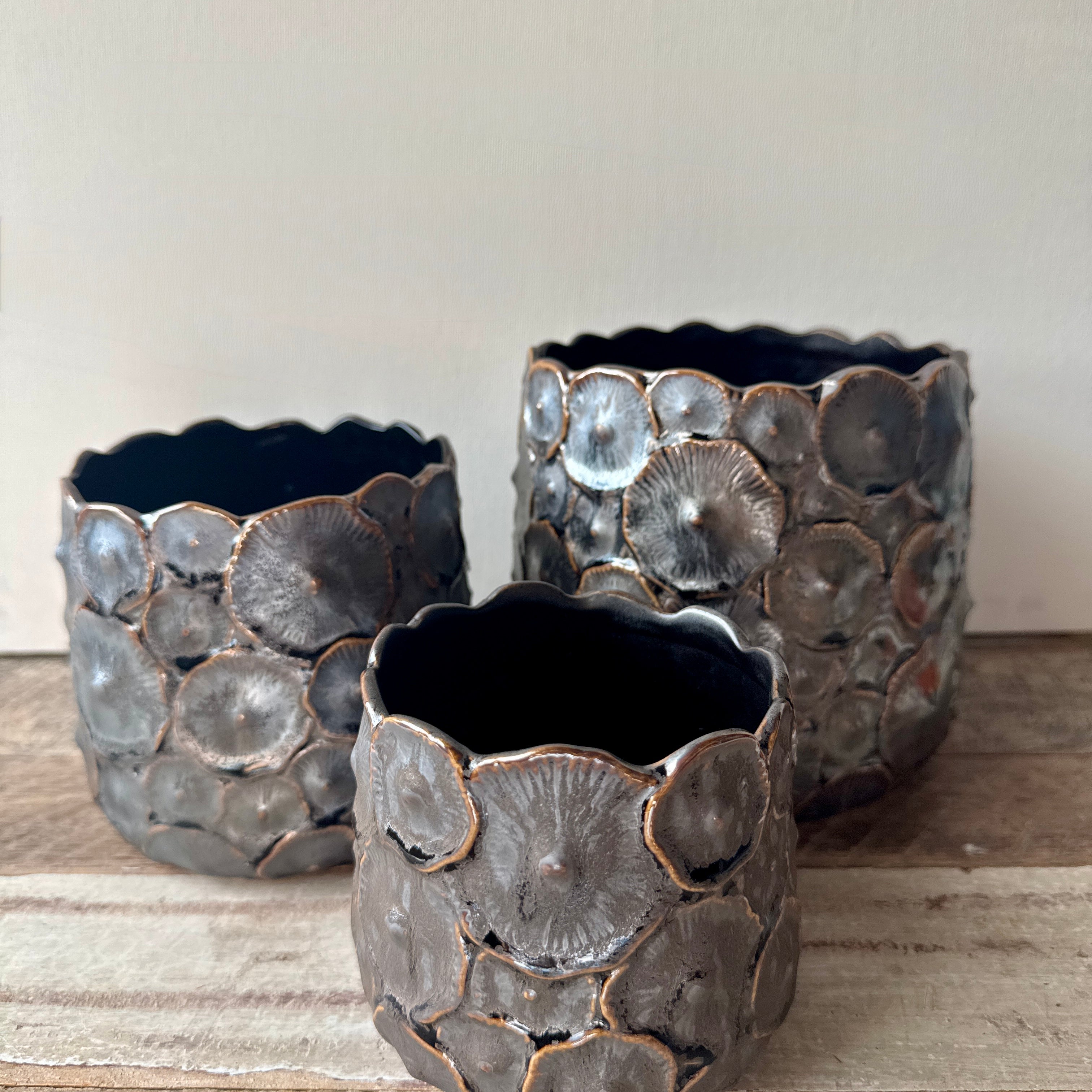 Add a touch of whimsy to your space with this charming plant pot featuring a subtle mushroom-inspired texture. Standing at 14cm high, it's perfect for small indoor plants, herbs, or succulents. A playful yet natural design to bring character to any shelf, windowsill, or desk.