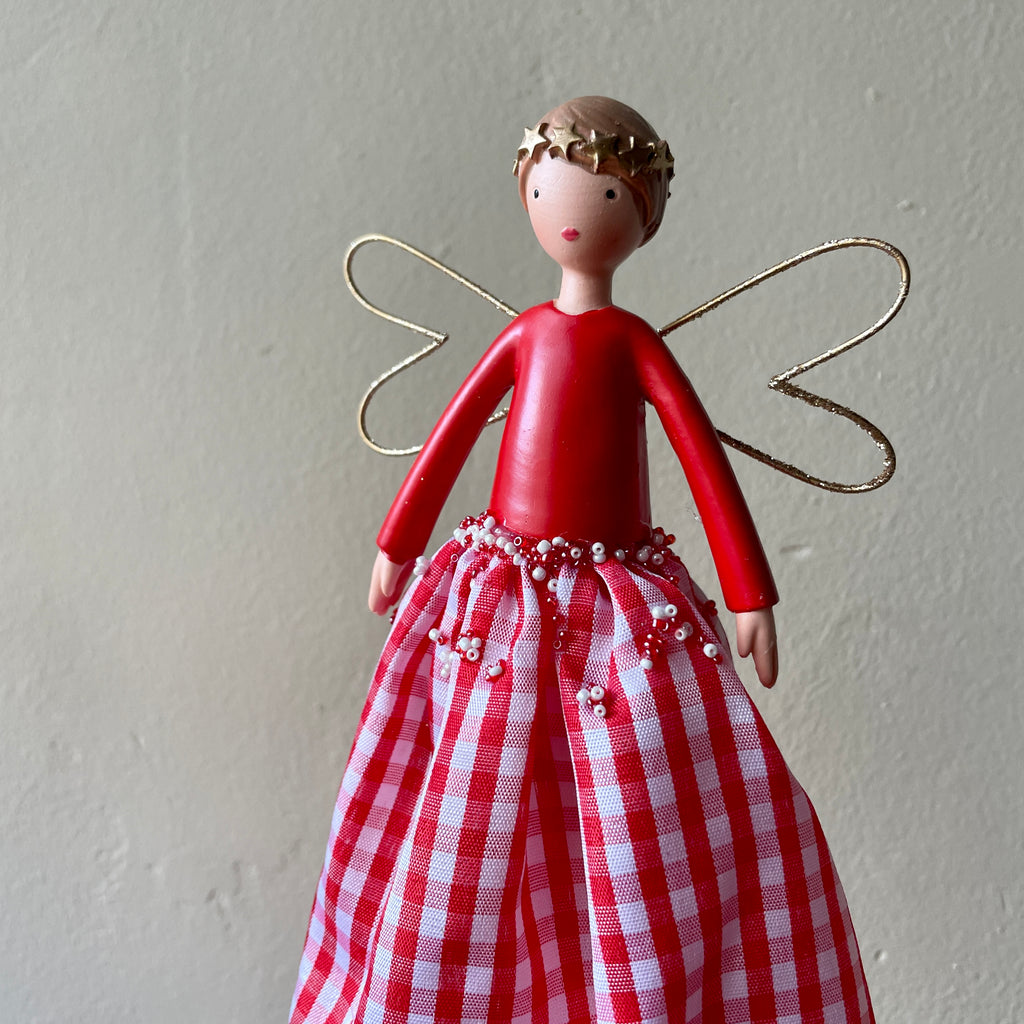 Tree Topper - Fairy in red & white gingham dress measures H28cm tall