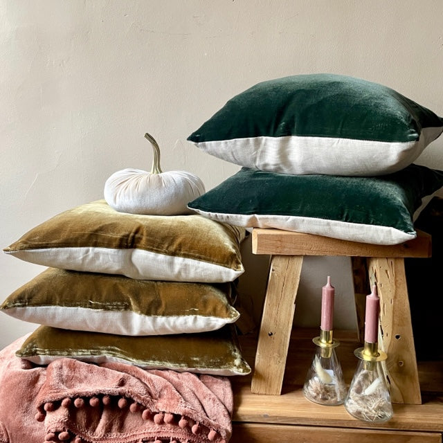 Made from soft neutral velvet, and finished with a gnarly gold resun stalk, this is a simple and beautiful way to add a touch of seasonal style to your home.