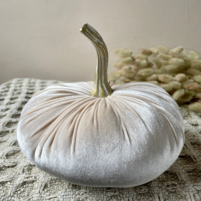 Add a little luxury to your autumna interiors with our ivory cream velvet pumpkin.