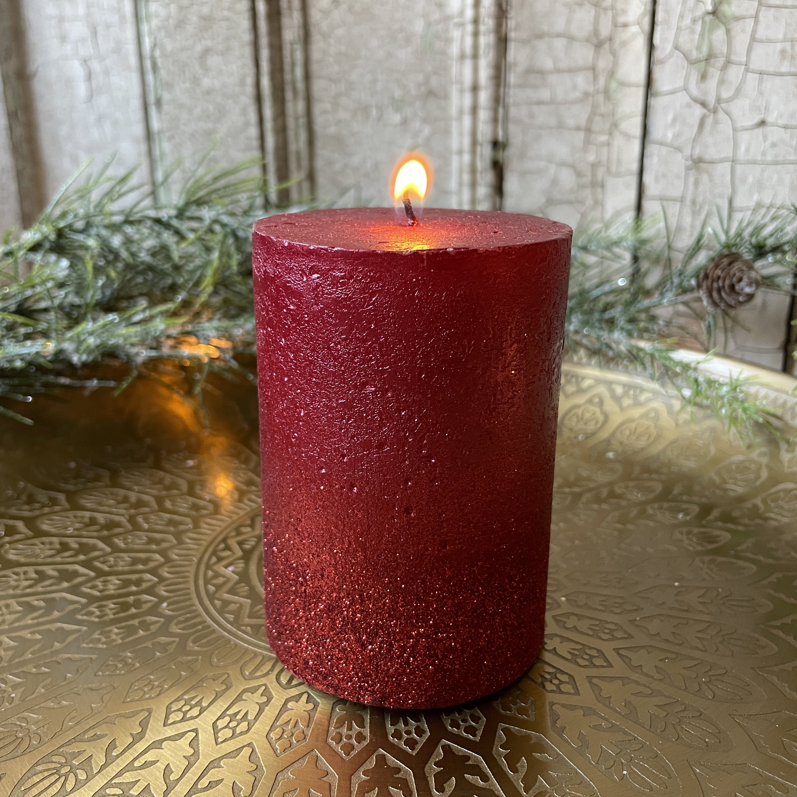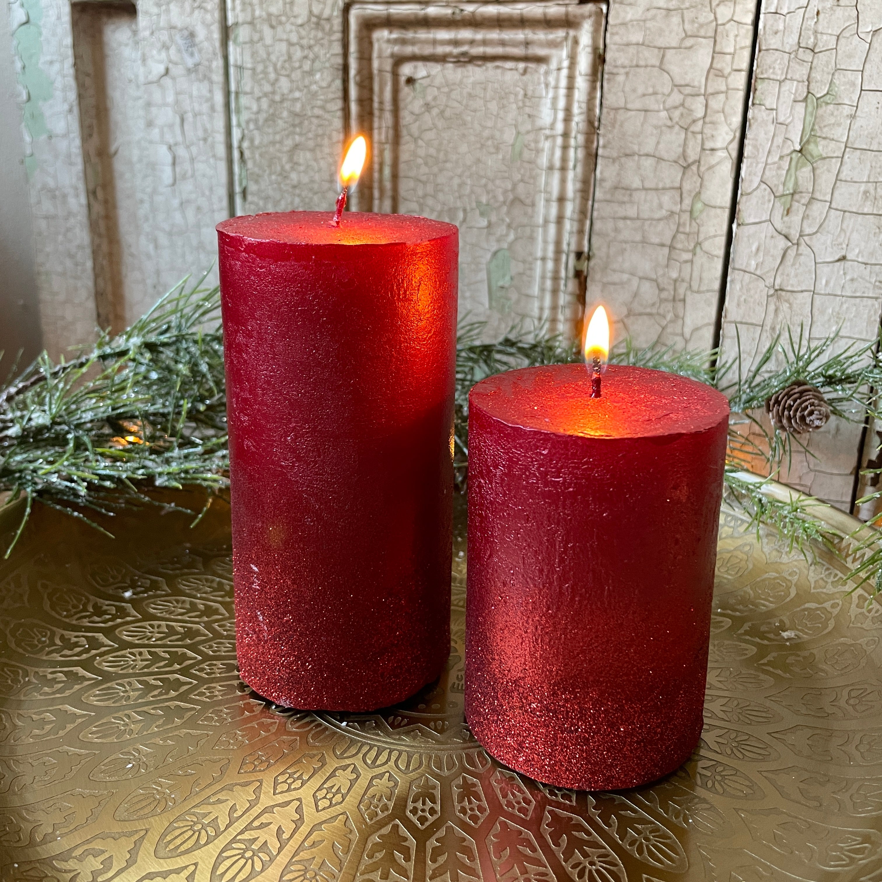 Glitter Pillar Candle - Red, H10cm
