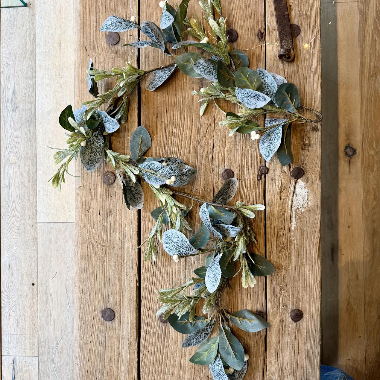 A beautiful full garland, ideal to adorn your mantle, staircase of even dining table. Compriusing lovely full fronds of leafy foliage and berries, finished with a gentle touch of glitter.
