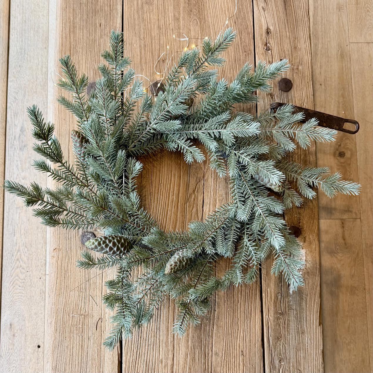 Add a touch of natural charm to your door with our Green Noble Pine Wreath! Filled with lush pine fronds and long pinecones, it’s ready to shine as-is or jazzed up with lights and picks.