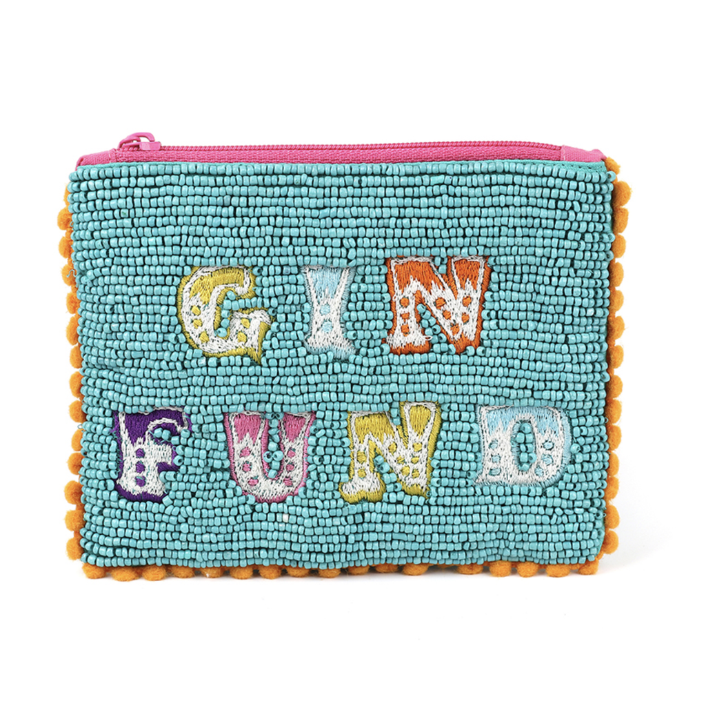 Make Up Bag - Block Print Ruffle Trim, Pink & Green