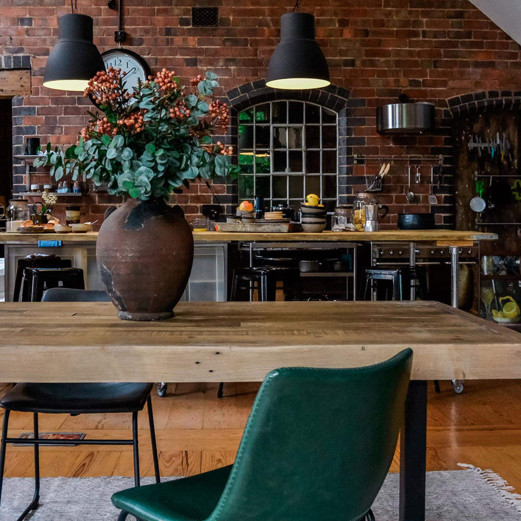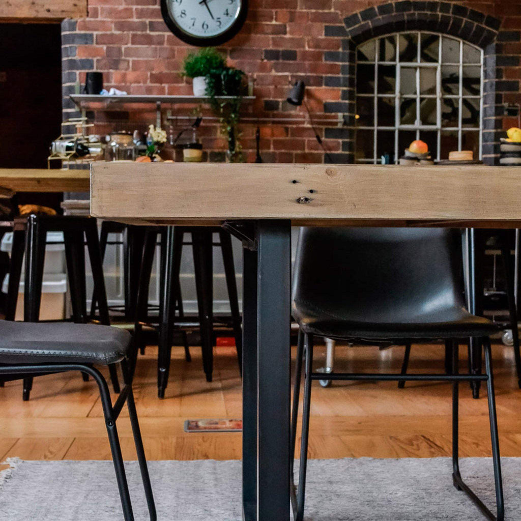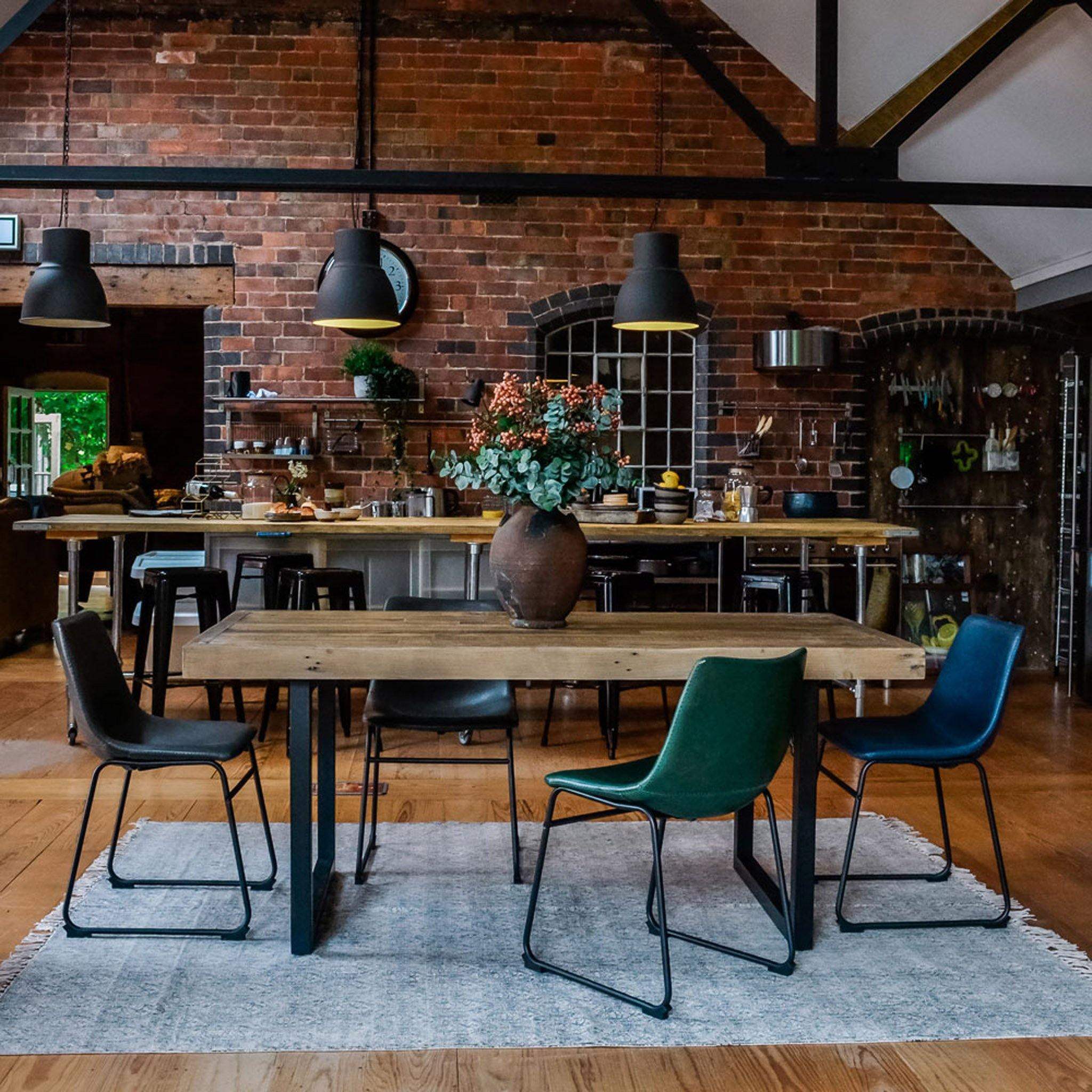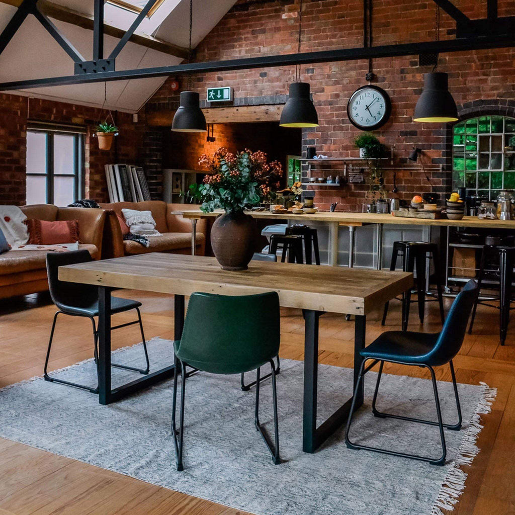 The Boston fixed top dining table, made from rustic reclaimed timber with sleek black metal legs can seat 6-8 people! It measures: H77.5cm x L180cm x D90 cm.
