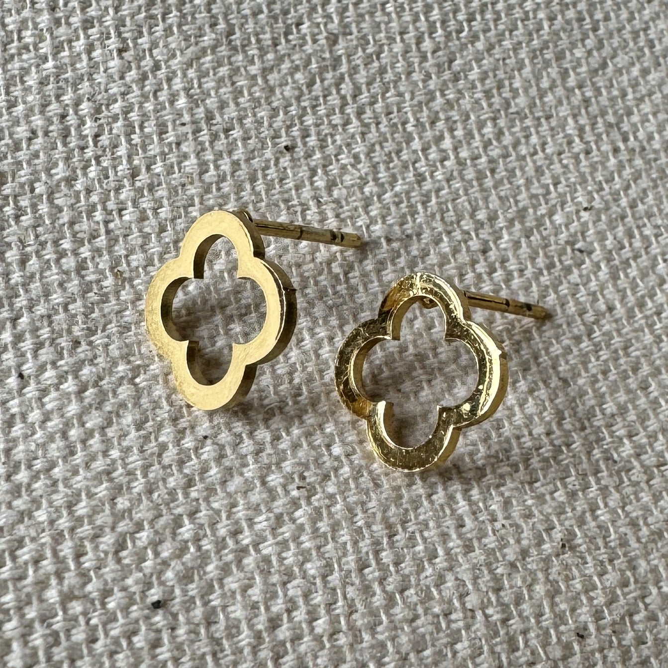 Everyday Earrings - Waterproof Gold Open Clover Studs. These incredible 4 leaf clover stud earrings are a take on the iconic design. A gorgeous gift for yourself or a friend.