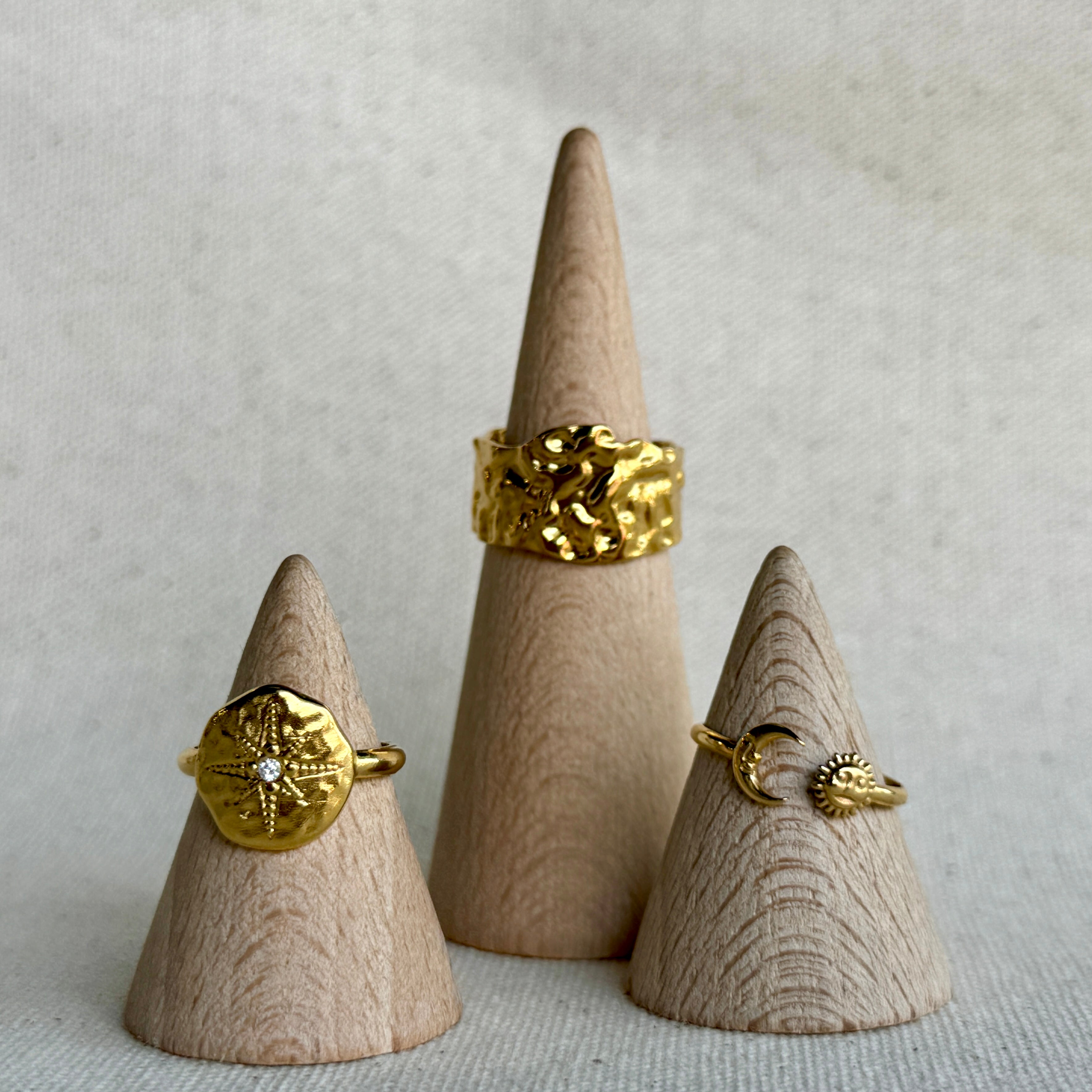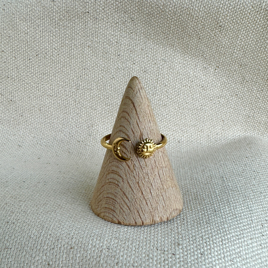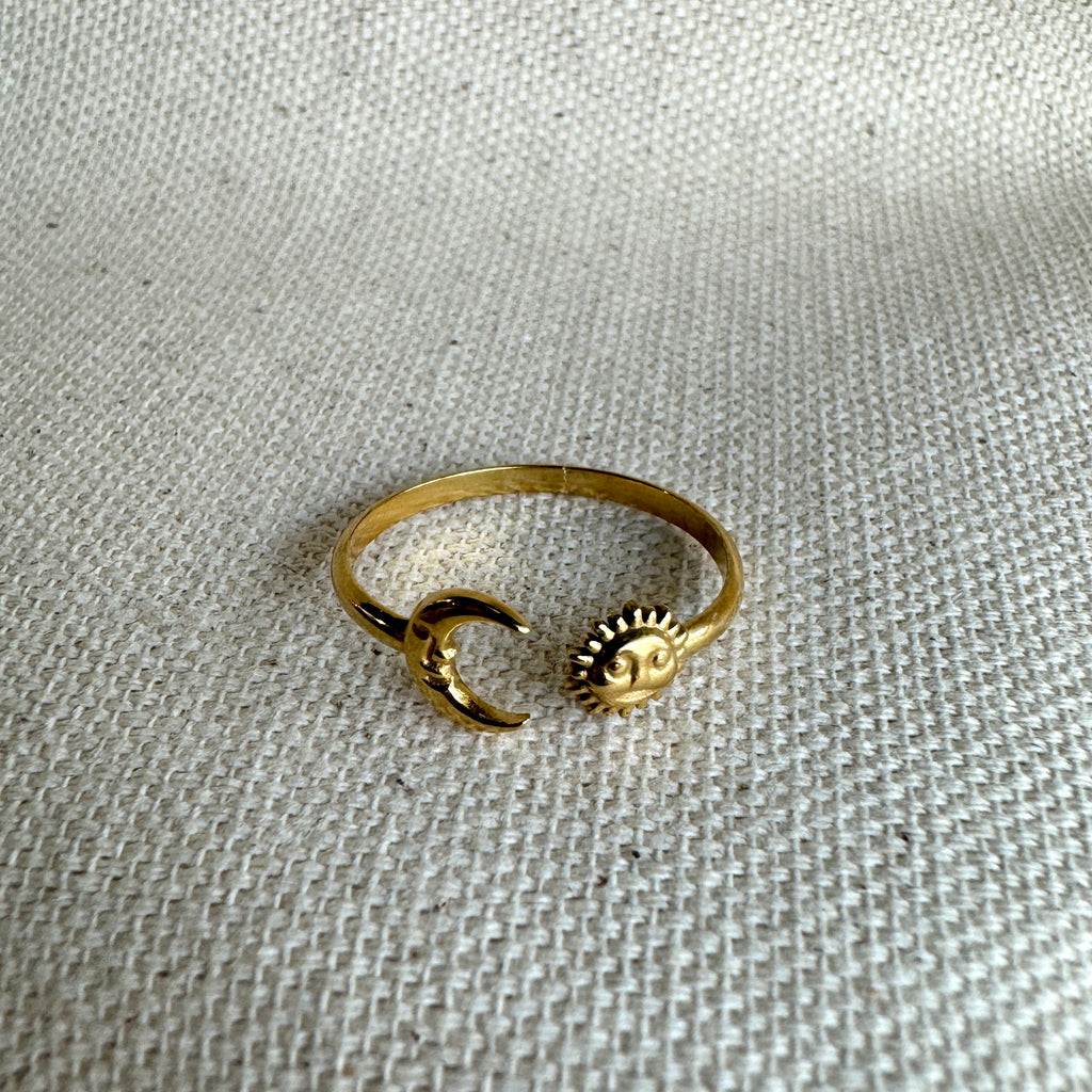 Ring - Fine Waterproof Gold Open Moon & Sun
