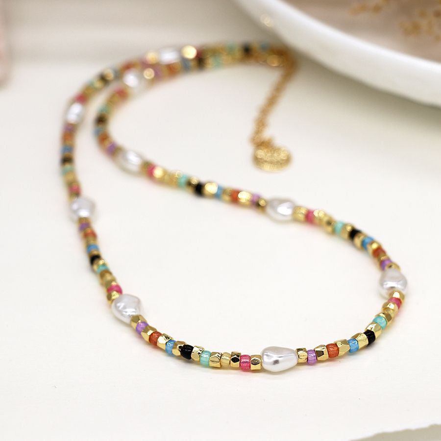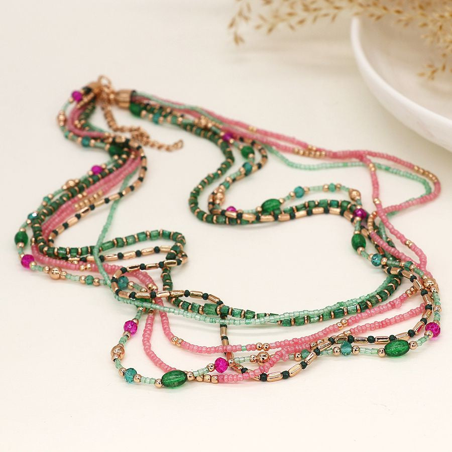 Bracelet - Twist Bead Stretch, Pink & Tan