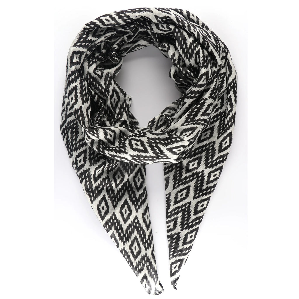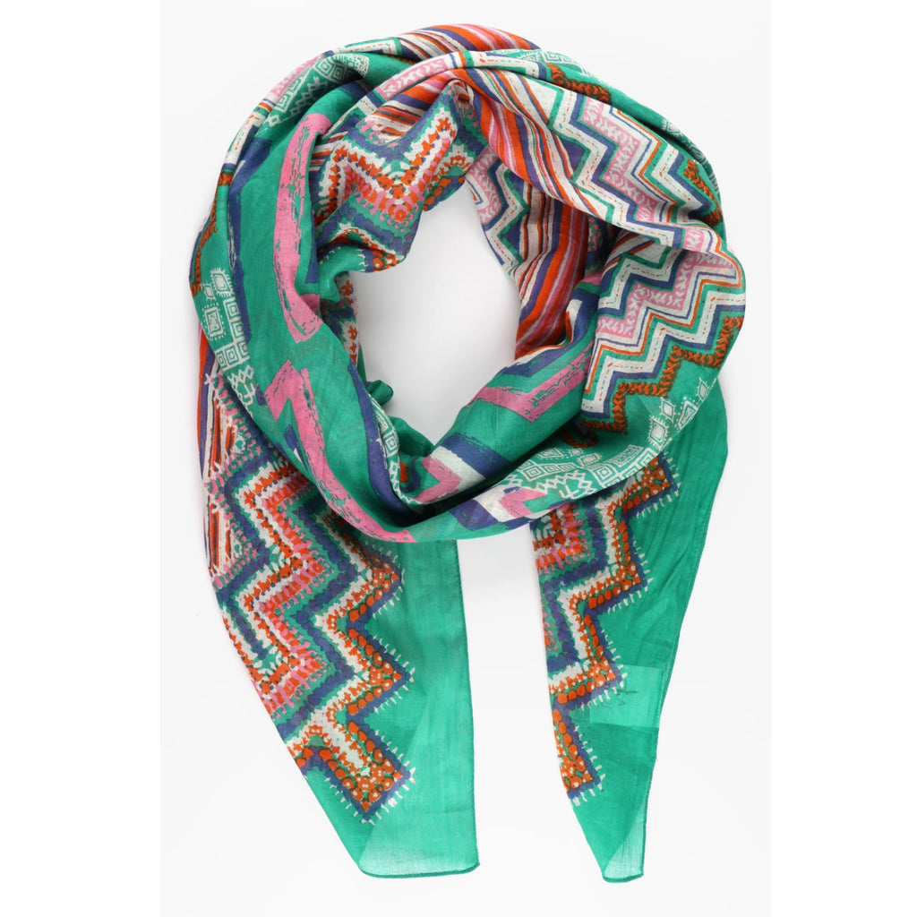 Cotton Scarf - Blue & Pink Patchwork Print with Tassels