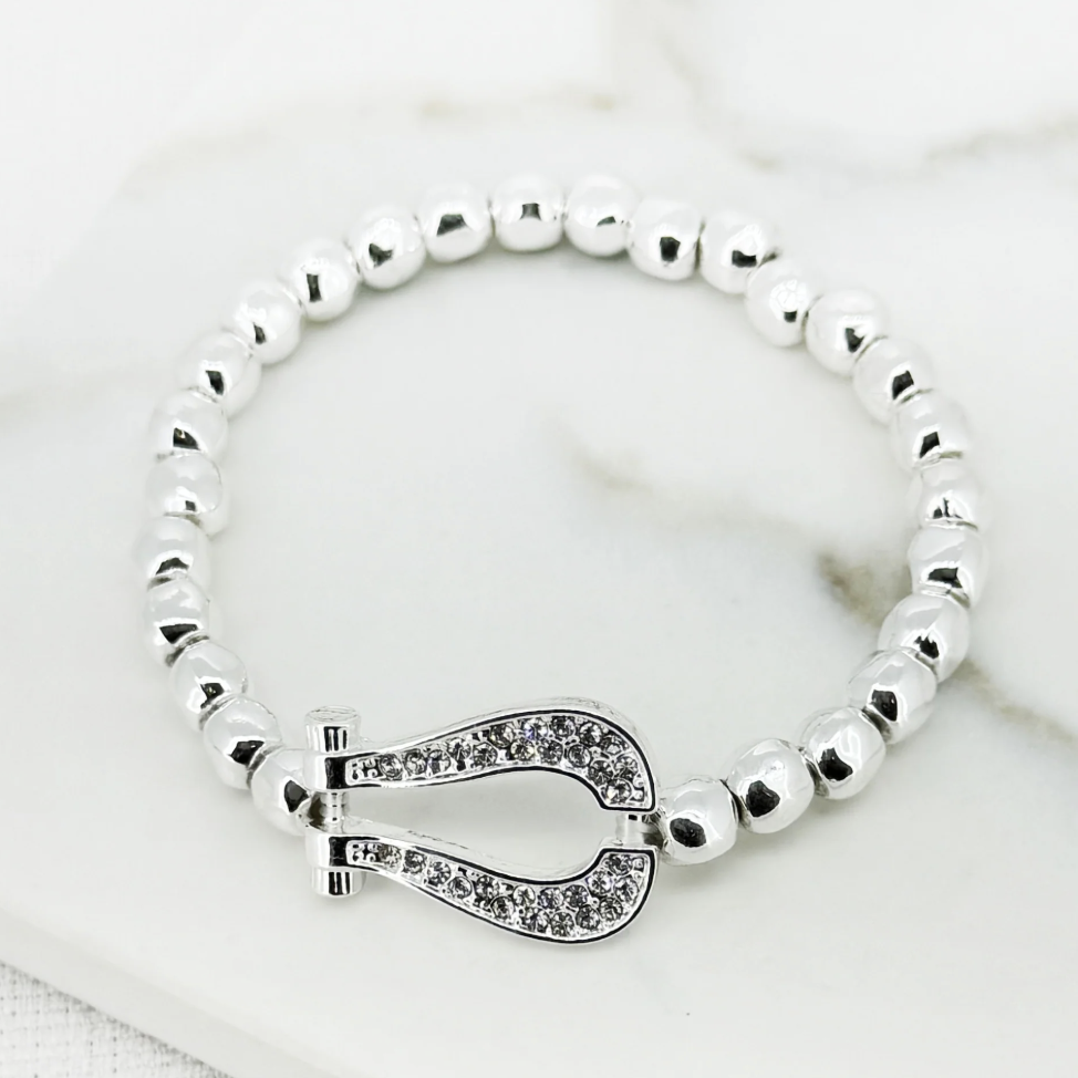 Bracelet - Silver Stretch & Crystal Horseshoe. This sparkling bracelet features a crystal embellished horseshoe charm for those who like to bring a little bit of luck into their lives.