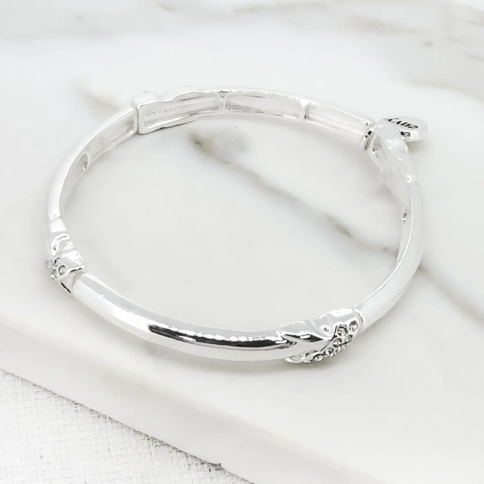 Bracelet - Silver Stretch w Crystal Detail. Sleek and versatile, this stretch bracelet features crystal accents. An elegant classic for those who want add a simple and understated piece to their collection.