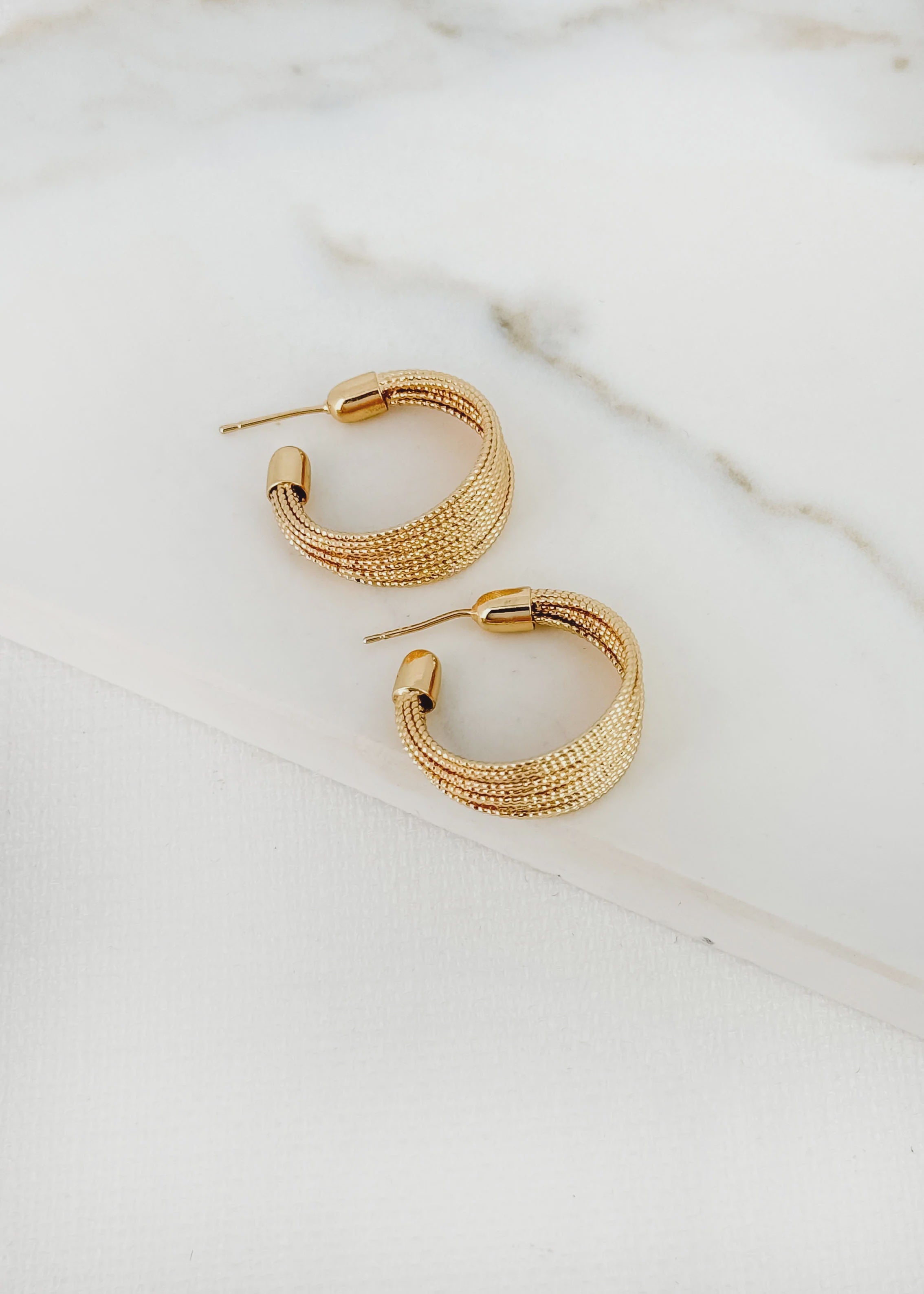 Earrings - Gold Multi Textured Hoops. A twist on a timeless classic these multi-textured earrings can be worn both casually and for more formal events!