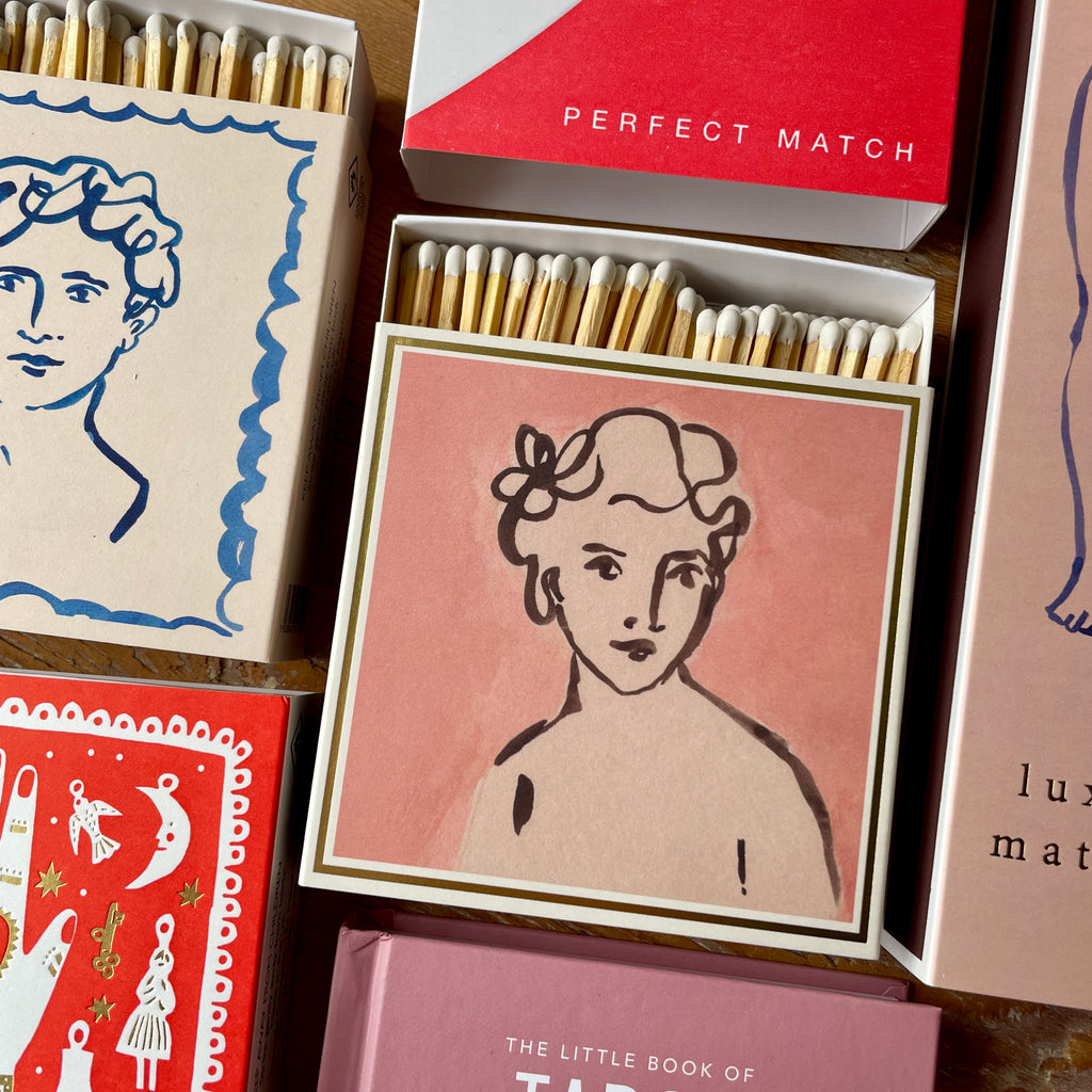 Keep candles, log burners and fires lit with our luxury long novelty matches. Lovely long matches with contrasting tips, make a great gift in a colourful and retro style matchbox. Bottled matches make a great coffee table tray talking point. These matchboxes, printed in the UK make a beautiful fireside statement.