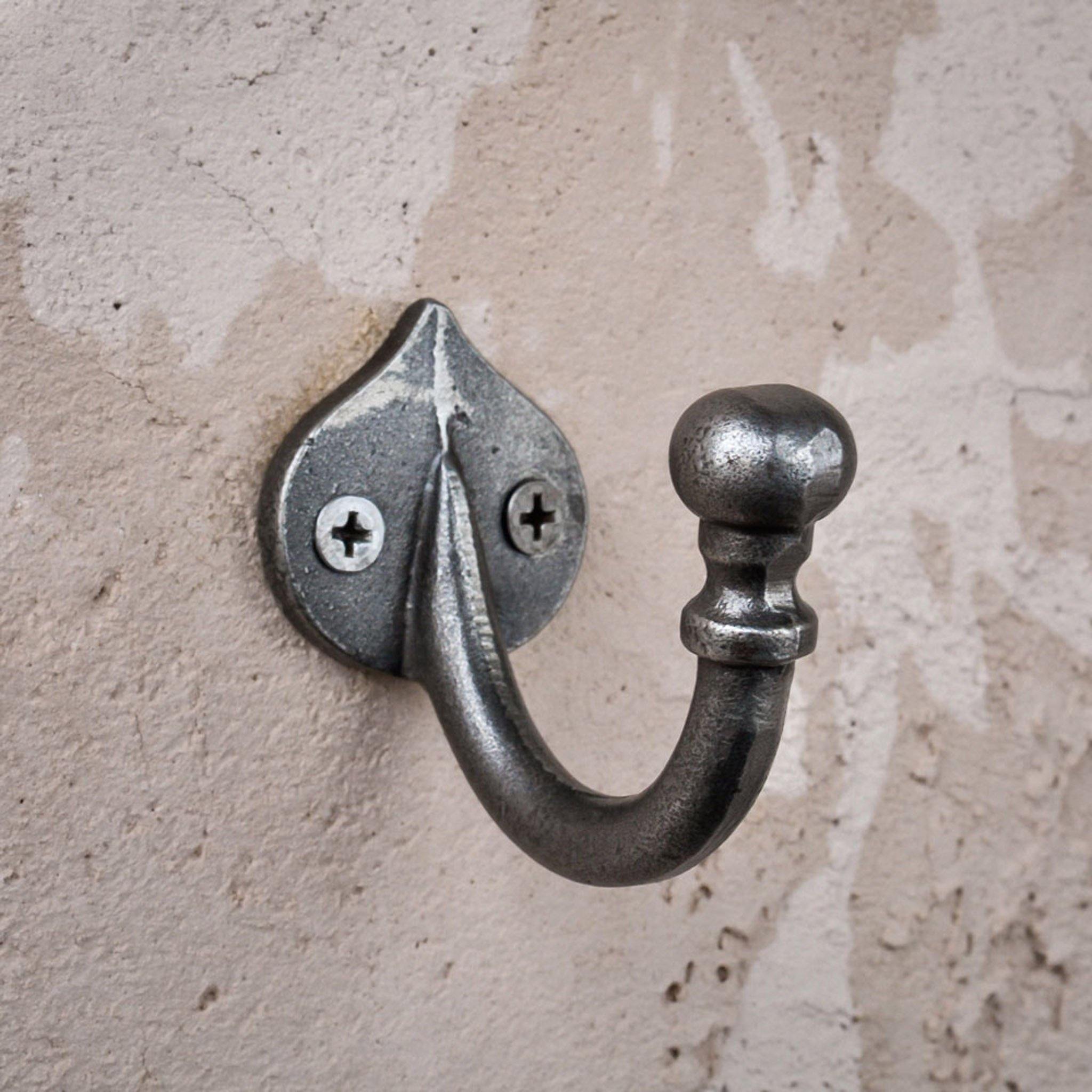 Cast iron single hook with spearhead detailing. A single hook is great for hanging a towel in the bathroom or line up multiple on the back of your bedroom door.