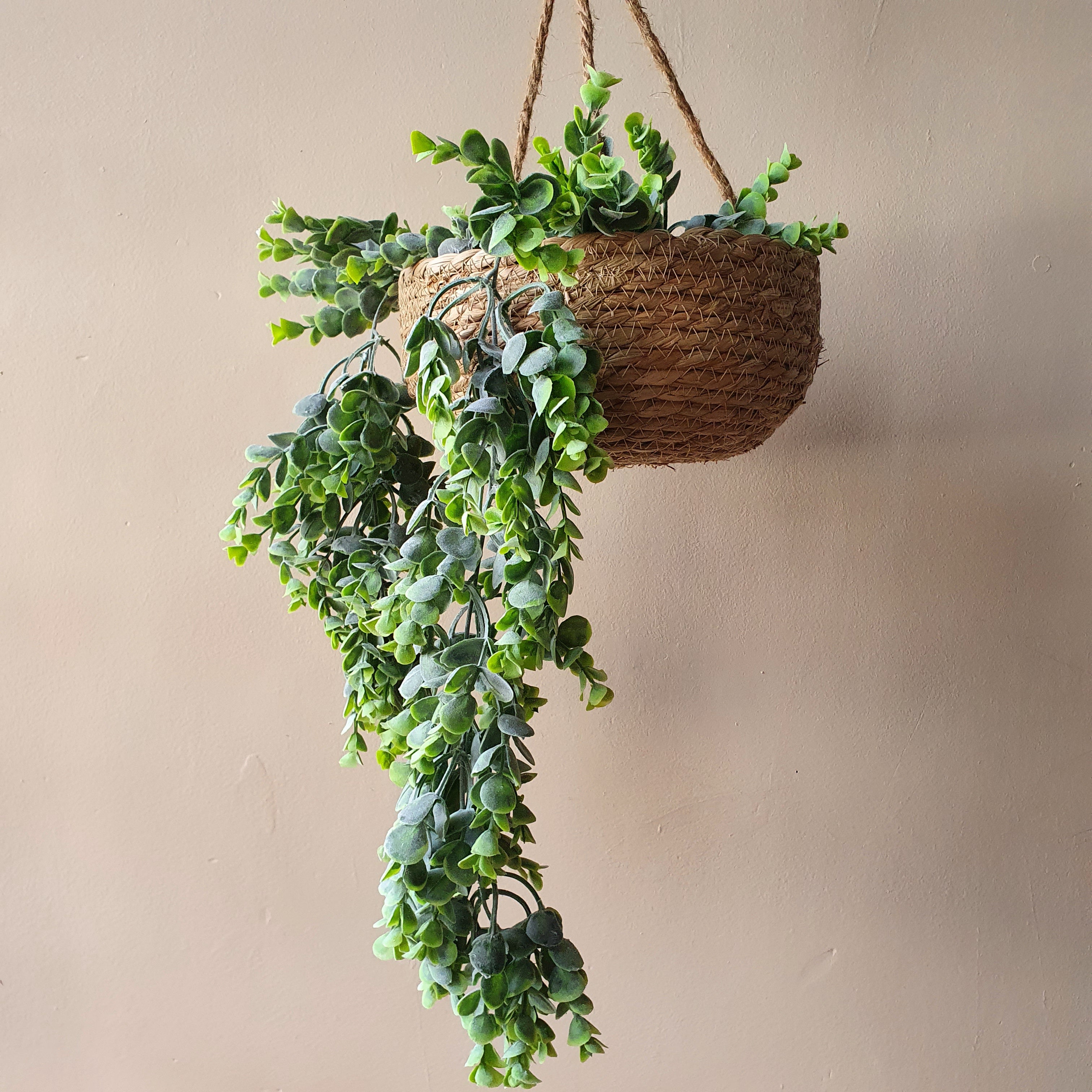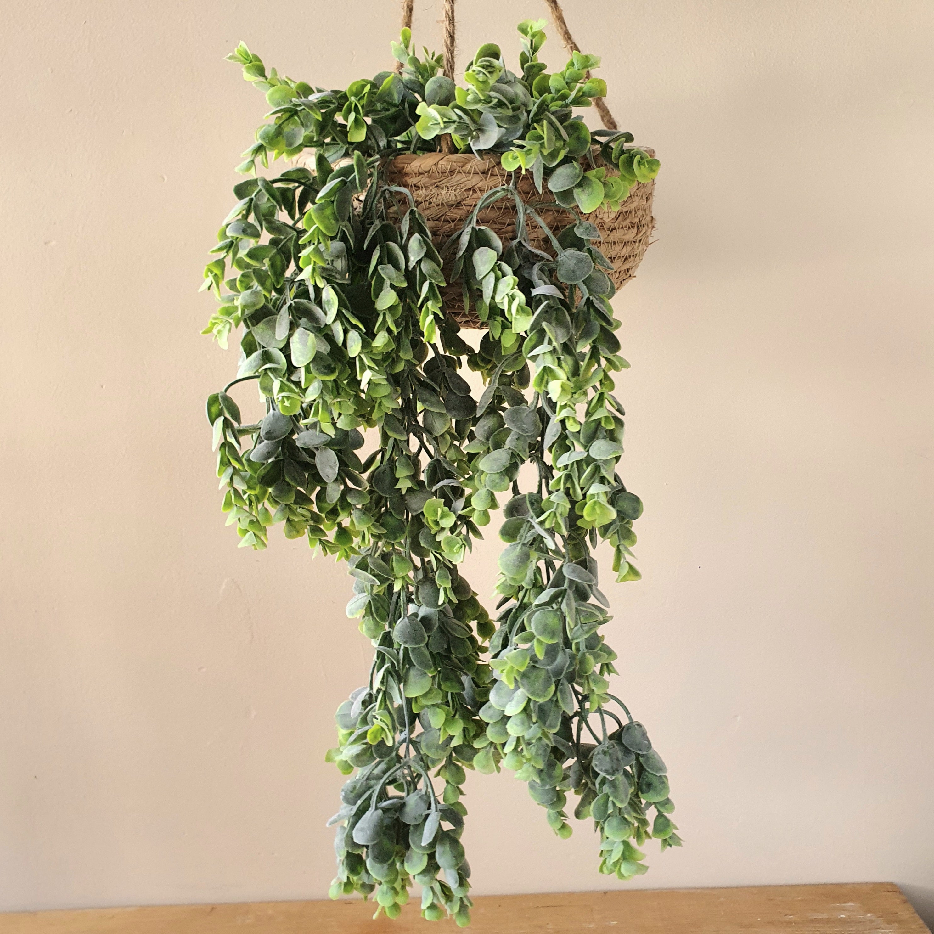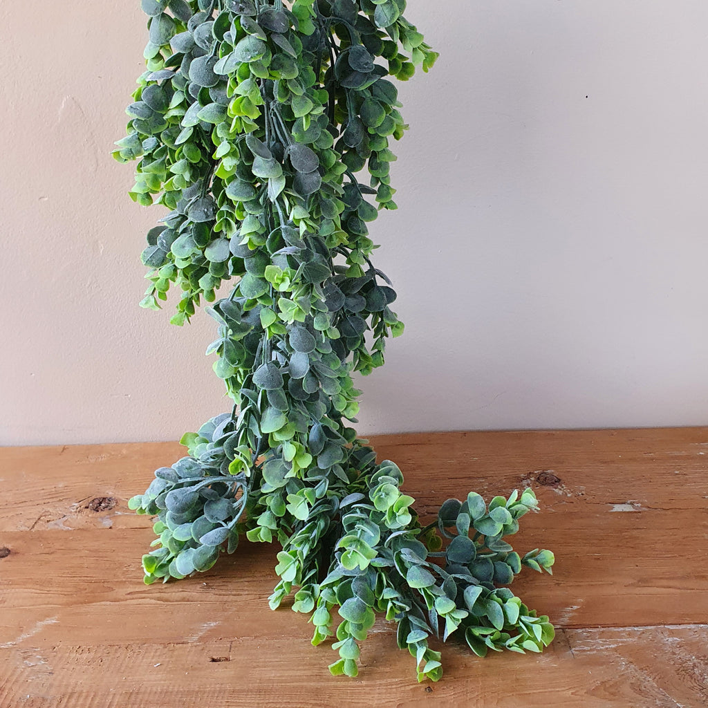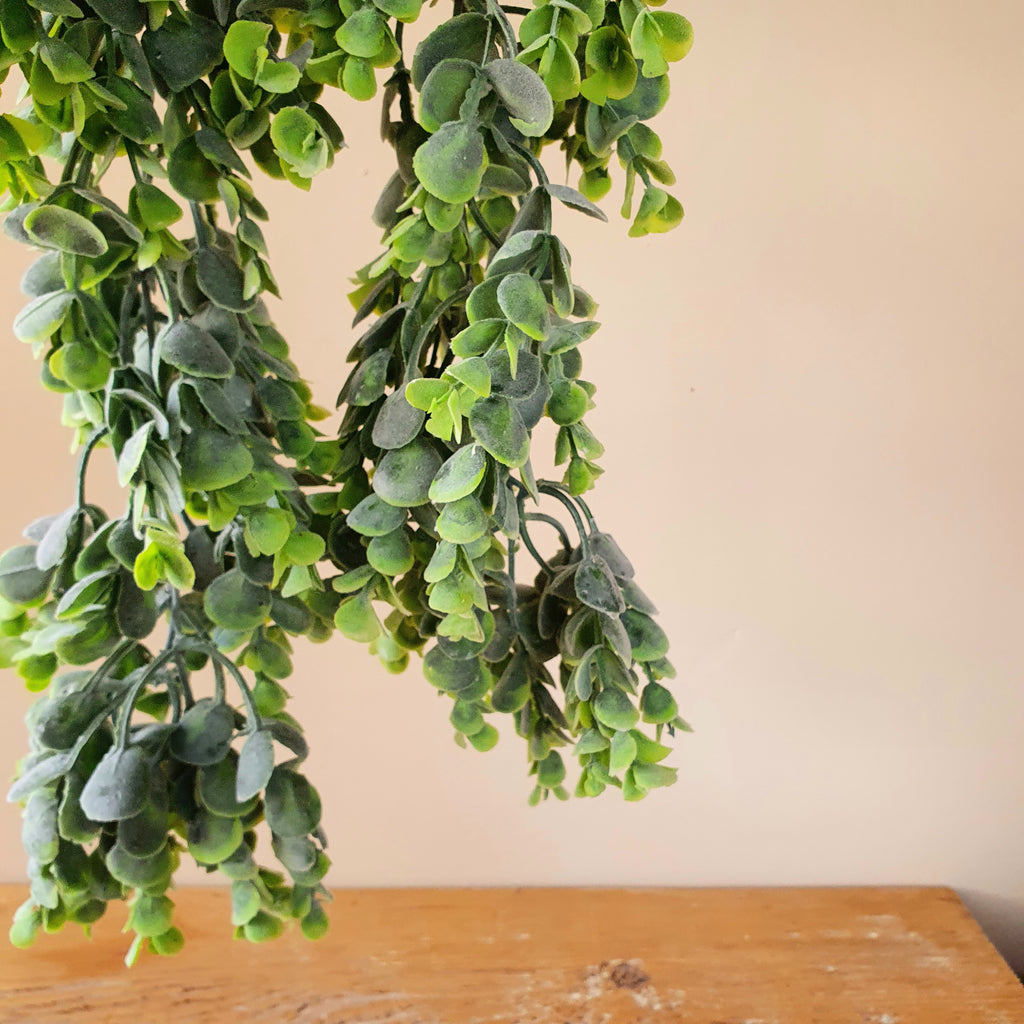 Gorgeous faux flocked eucalyptus. A must have for any hanging basket!