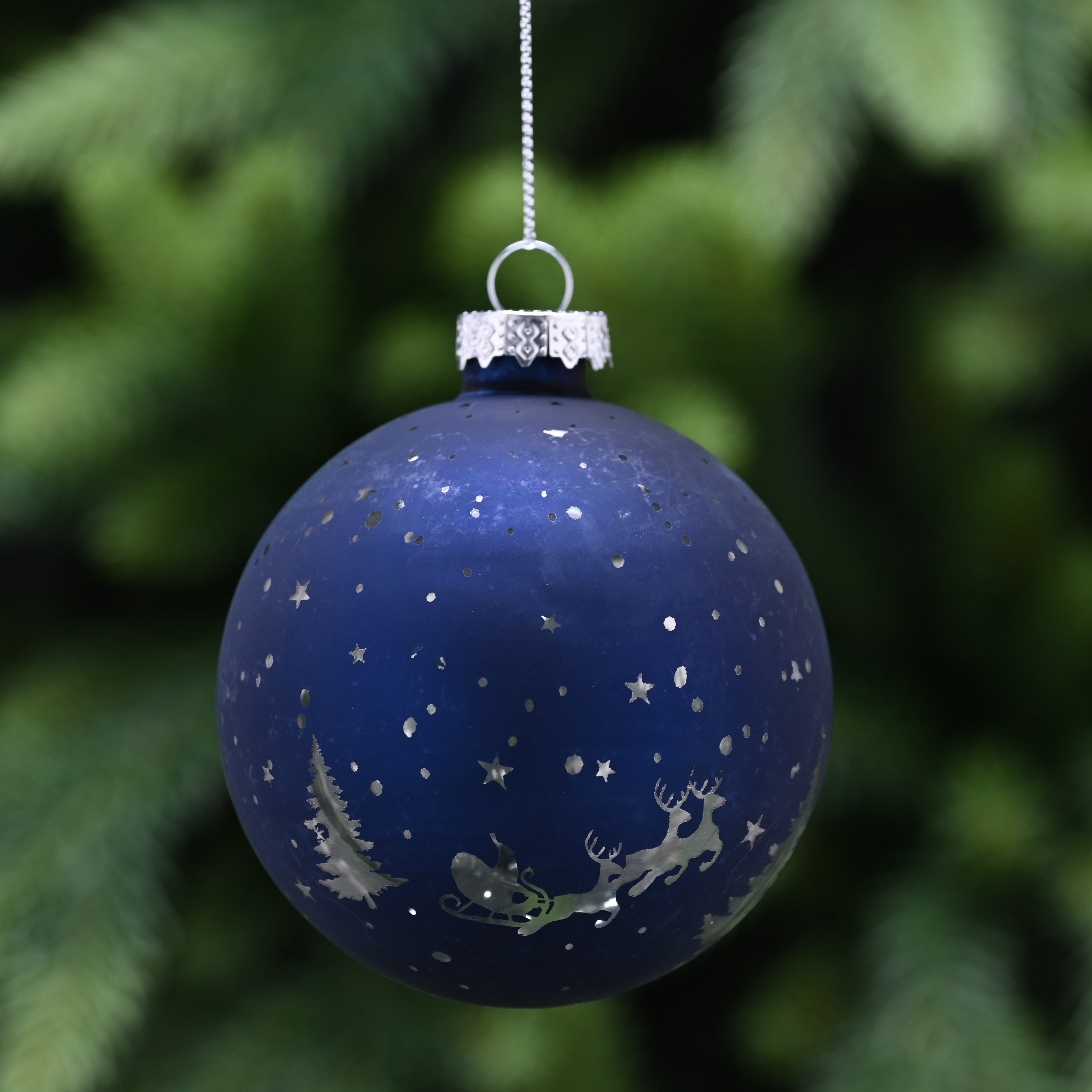 Glass Ball Bauble - Blue & Silver Reindeer, 8cm