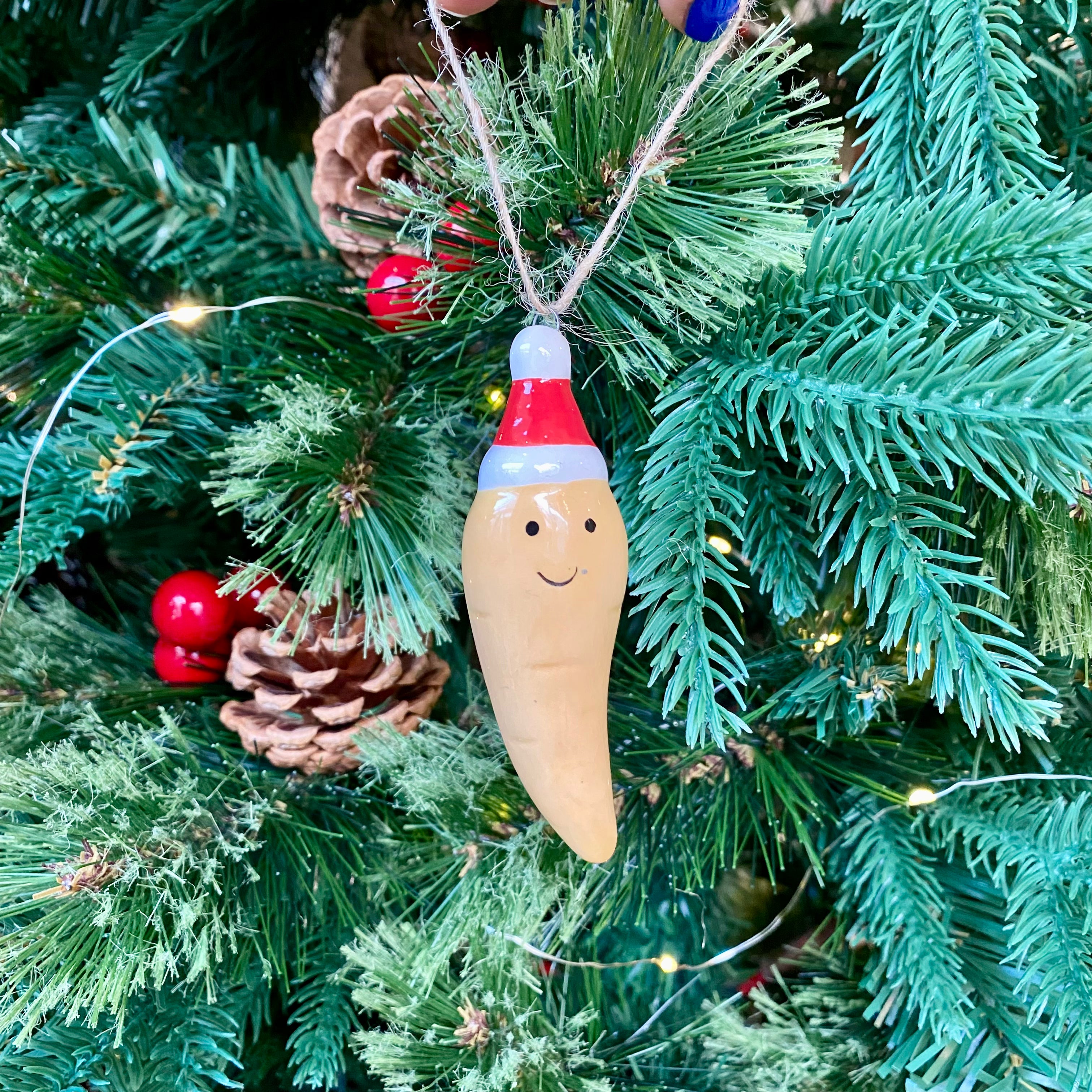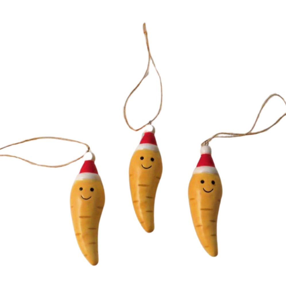 Add some fun to your festivities this Christmas with this parsnip decoration. With its cosy santa hat and warm smile, this is sure to bring joy this winter.