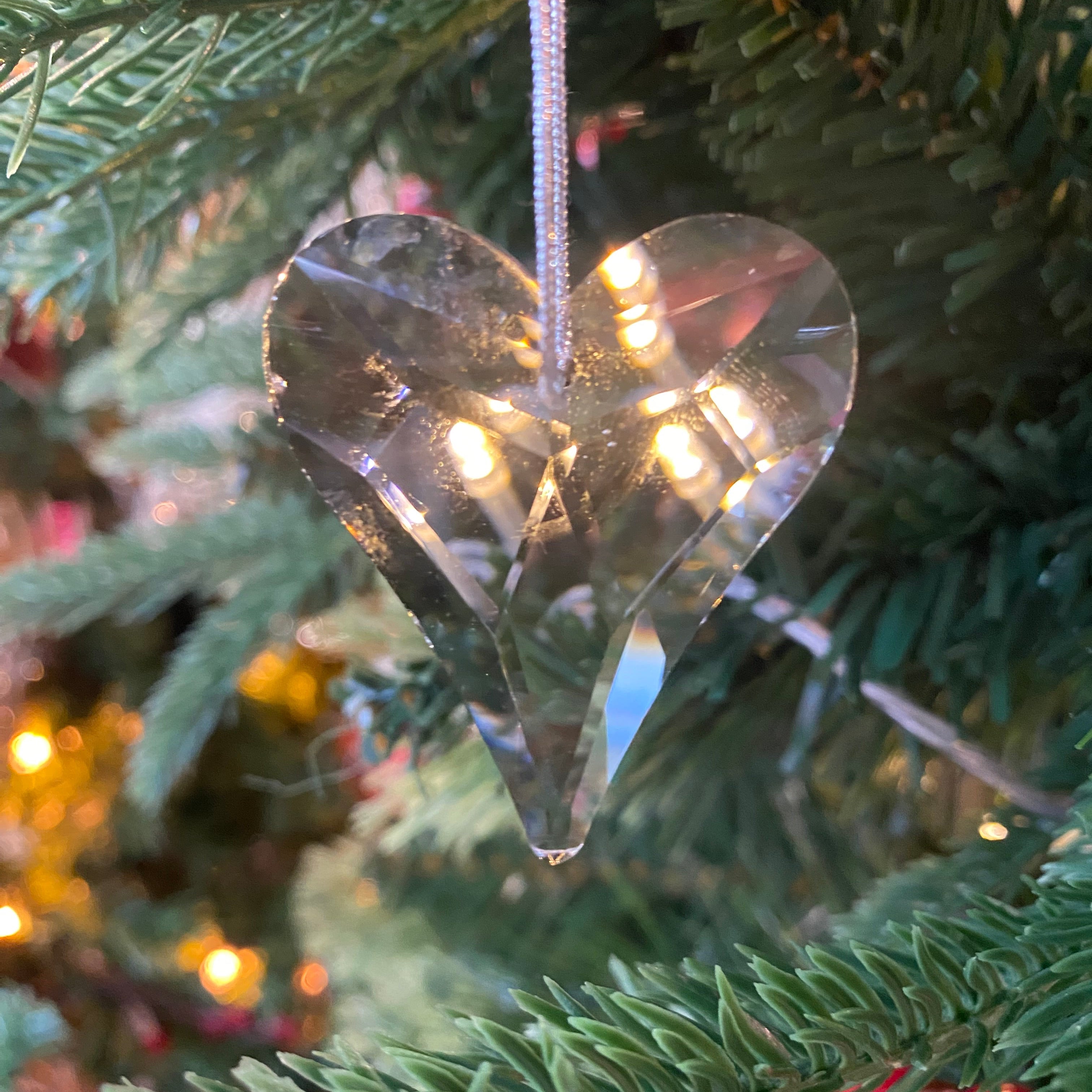 This stunning clear glass heart ornament brings a touch of simplicity to your tree. It catches and reflects tree lights beautifully, creating a soft, sparkling glow that enhances your festive decor. Made from glass it is extremely lightweight and perfect for those who love a sophisticated look. It also makes a lovely gift to celebrate love during the holiday season.