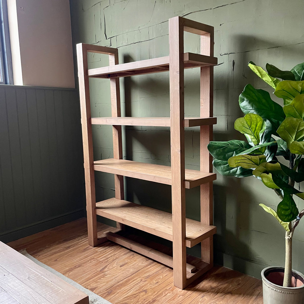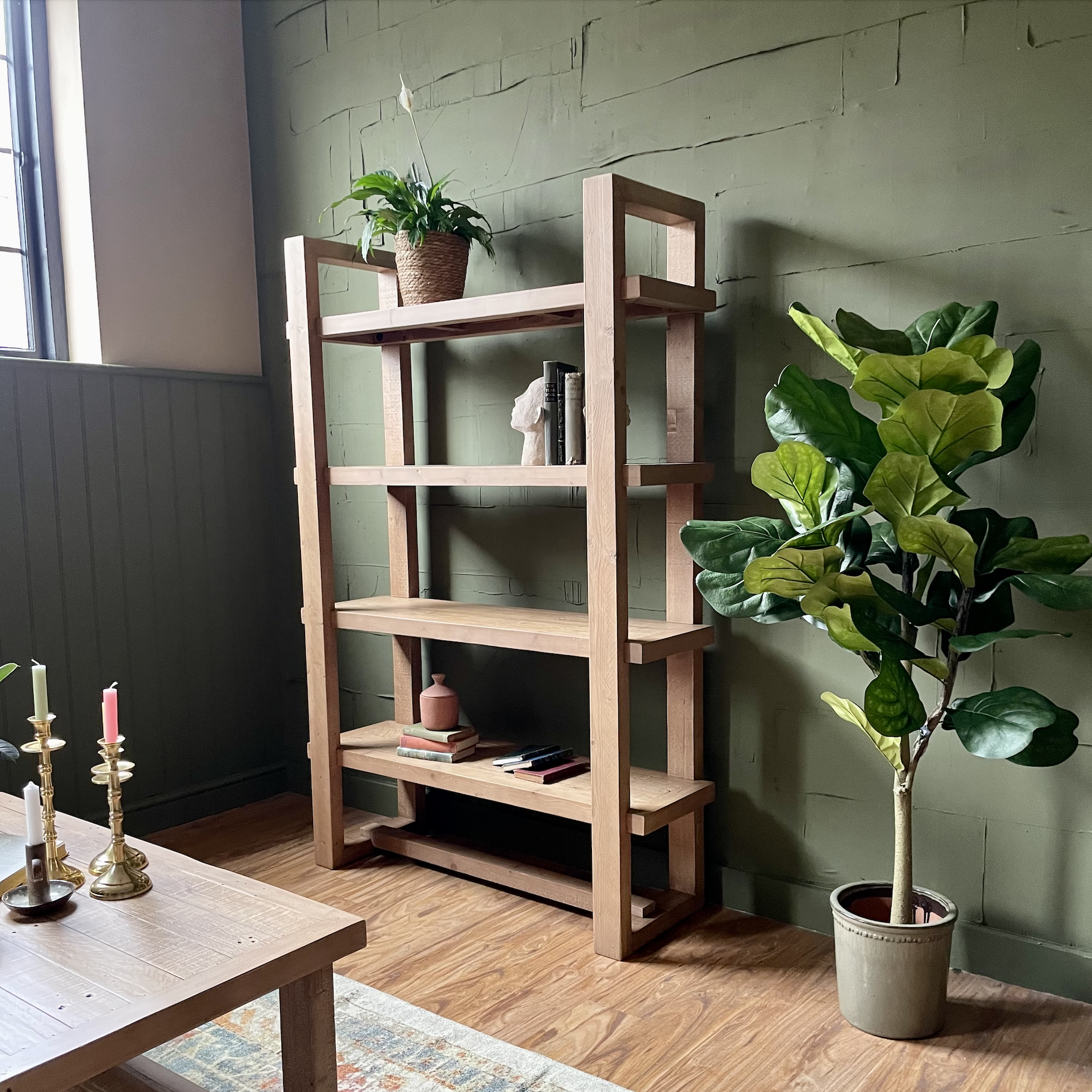Display books, travel mementos, framed photos in your living room or use as extra storage in a bedroom or kitchen. It also works perfectly as a stylish open larder for jars of dry ingredients. Features four reclaimed timber shelves- making it a useful piece in your home, a timeless classic whilst also making a statement.