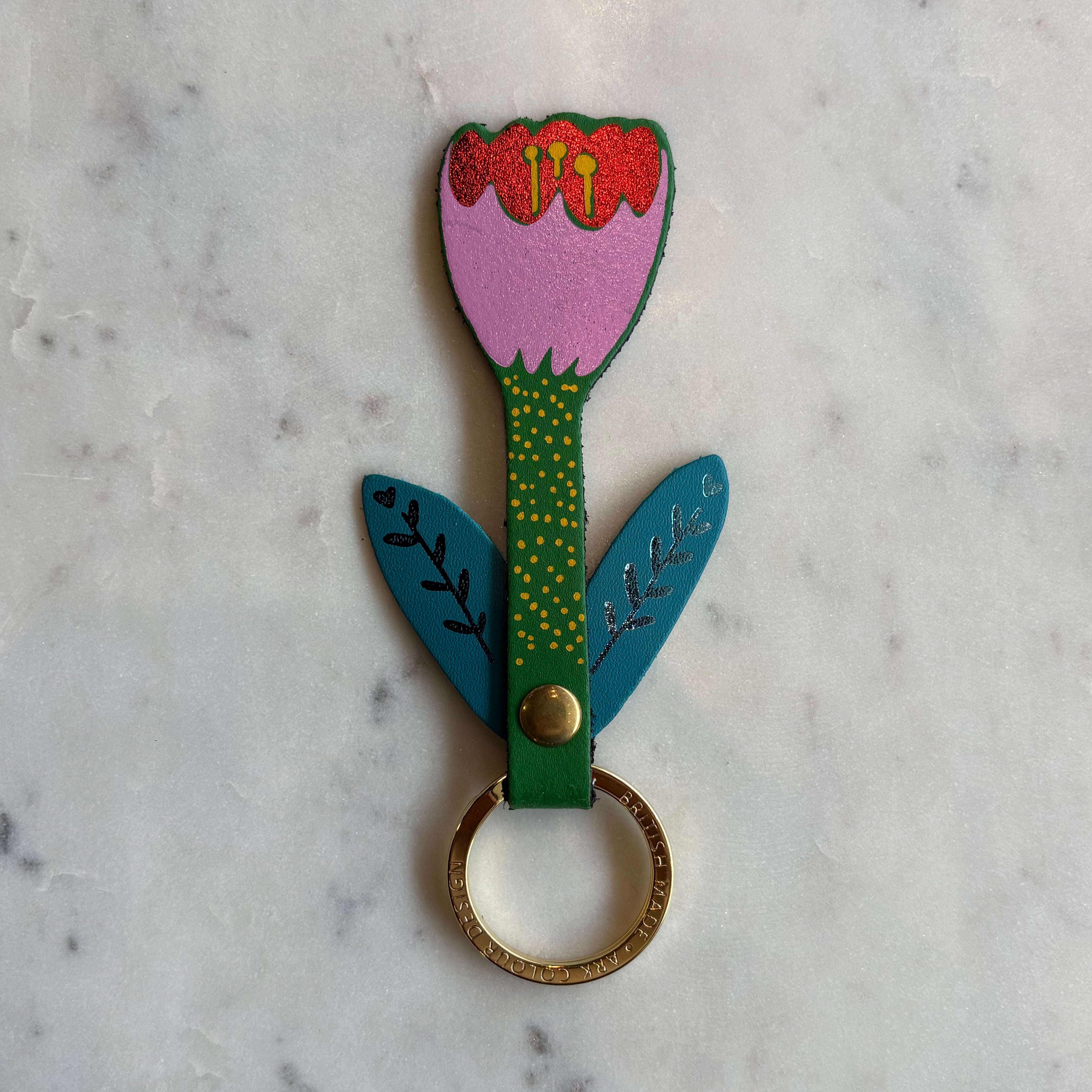 Let flowers hold the key to your heart! This double-layered key fob is crafted from 100% genuine leather and finished with a gold-plated ring. A beautiful and thoughtful accessory, perfect for gifting to someone special.