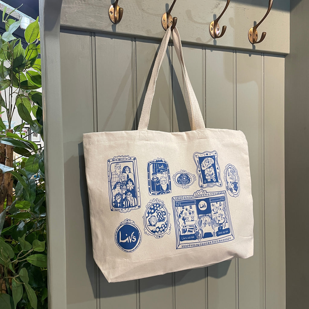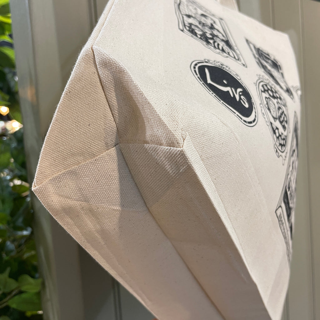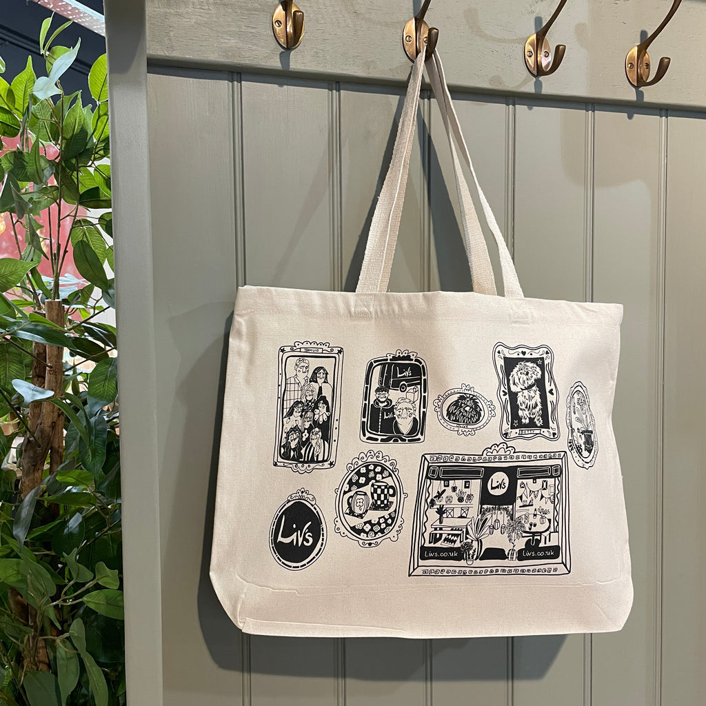 Liv's Tote Bag  - Illustrated Frames measures: W50cm H35cm D10cm  Handle Length 26cm