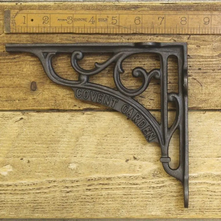 This cast iron bracket features scrolled detailing and the words 'Covent Garden'. Use two or three depending on the length of your shelf, great for use inside or outside