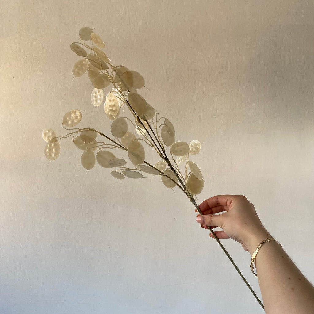 Our stem faux honesty spread in clear brings a touch of airy elegance to any arrangement. With its translucent seed pods and graceful stems, it captures the delicate charm of nature - without the need for upkeep. Perfect on its own in a vase or as a subtle accent in larger displays, this piece blends everyday simplicity with refined sophistication, creating décor that feels both modern and timeless.