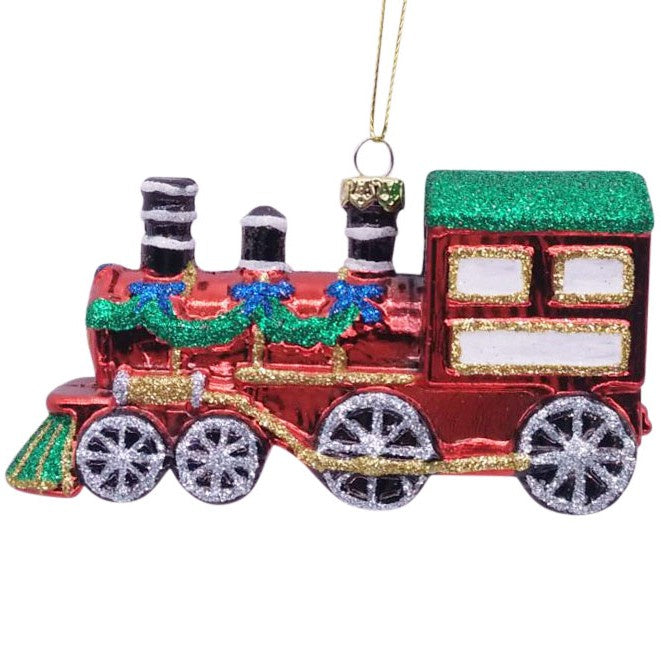Add sparkle and charm to your tree with this shiny, glitter train bauble. Featuring a shiny finish and glitter details, it’s the perfect decoration for bringing holiday cheer to your Christmas display. Ideal for train lovers and little conductors alike!