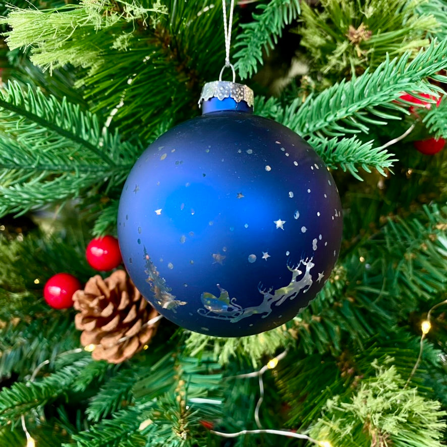 Glass Ball Bauble - Blue & Silver Reindeer, 8cm