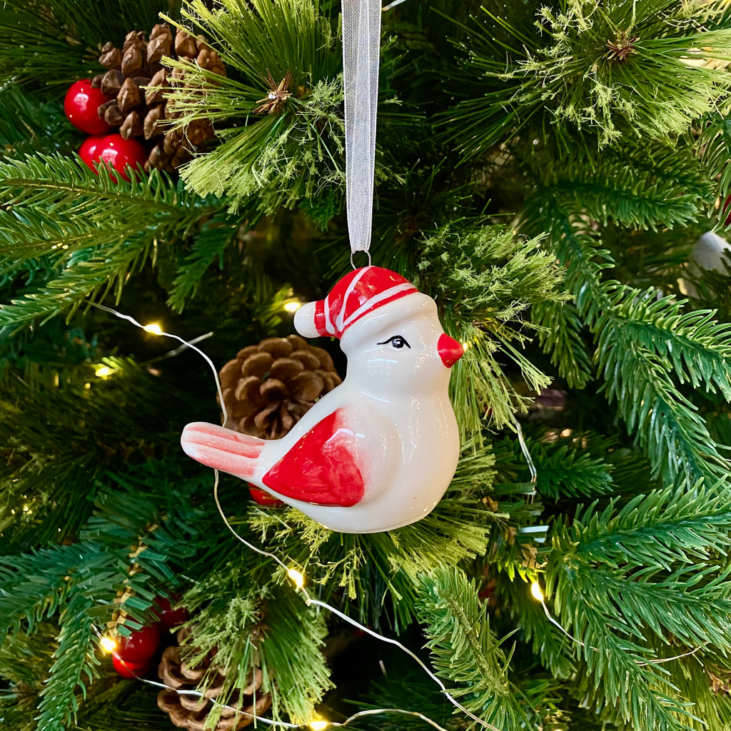 Hanging Dec - Festive Ceramic Bird, 7.5cm