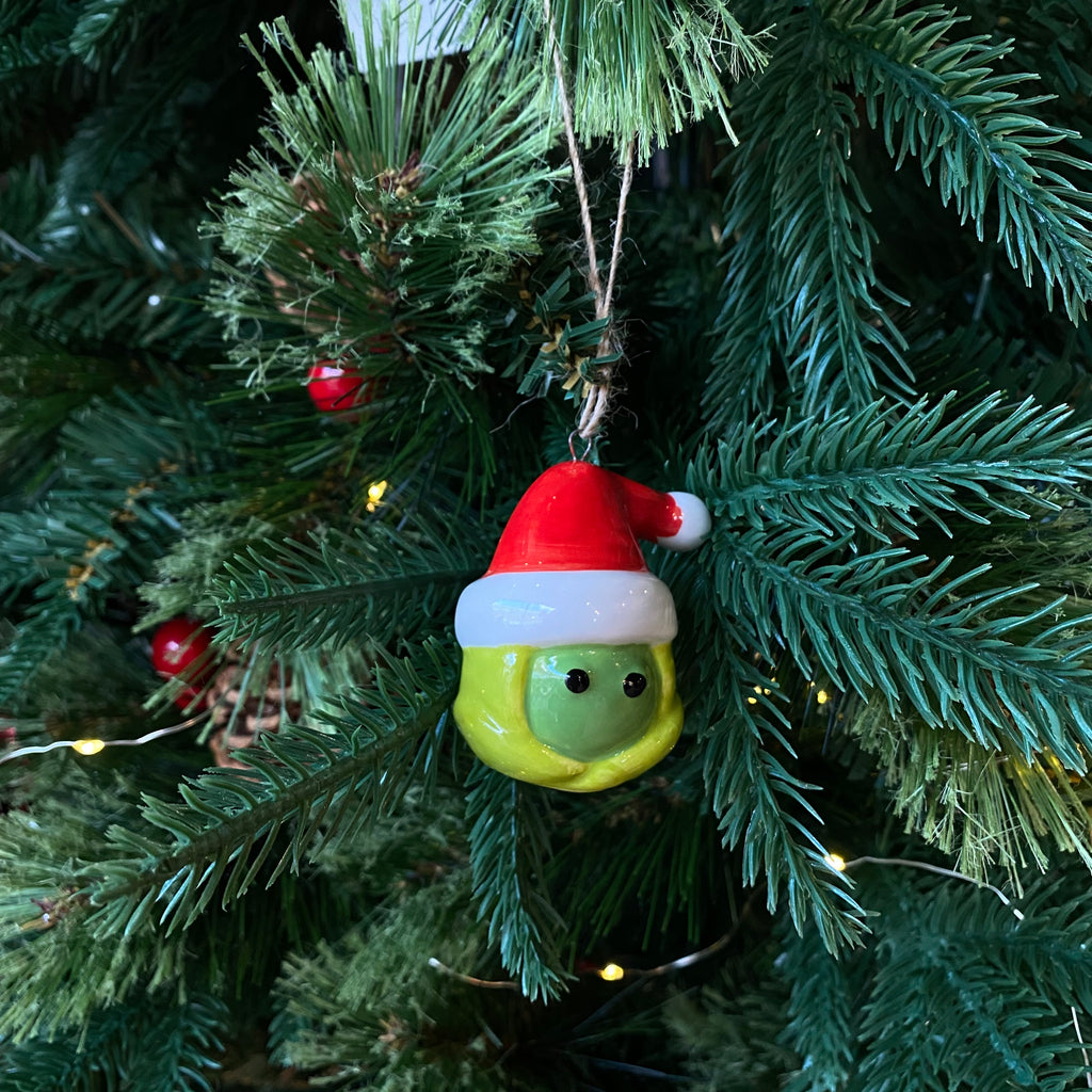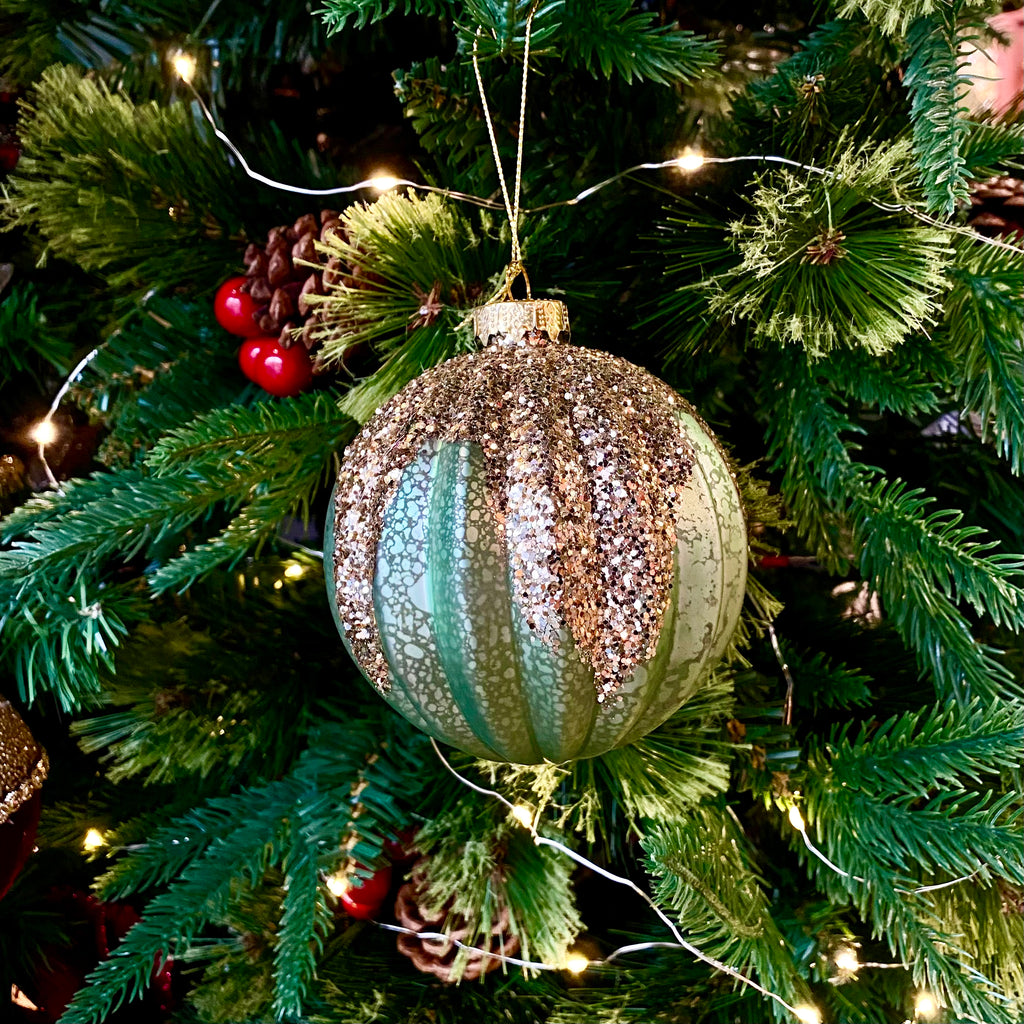 Glass Bauble - Green Onion, Gold Gems, 8cm