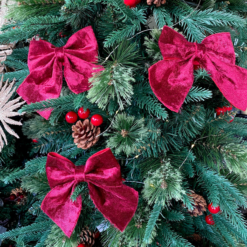 Set 3 Little Burgundy Velvet Bow, 15cm