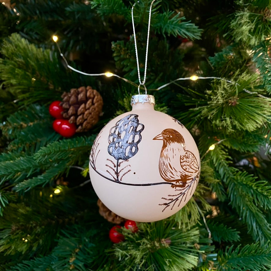 Hanging Tree Dec - Cream Ceramic Bird, 10cm