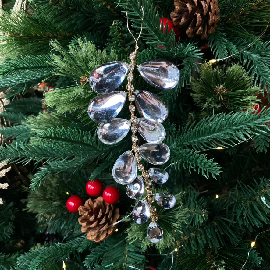 Hanging Tree Dec - Silver Gem Droplet, 15cm