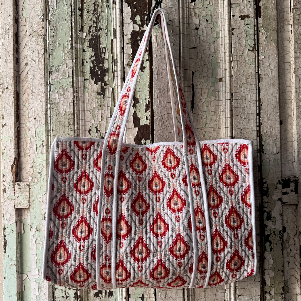 Handmade Reversible Shopper - Small, Paisley Flame, Red