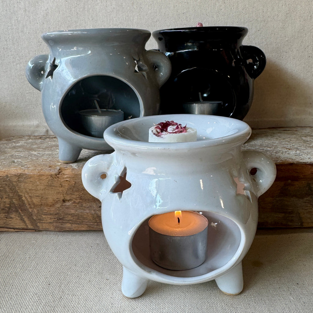 Ceramic Oil Burner - Cauldron, 3 Ast. Colours