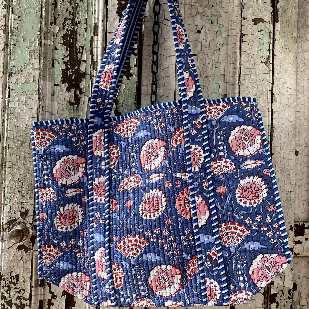 Handmade Reversible Shopper - Small, Navy & Pink Flowers