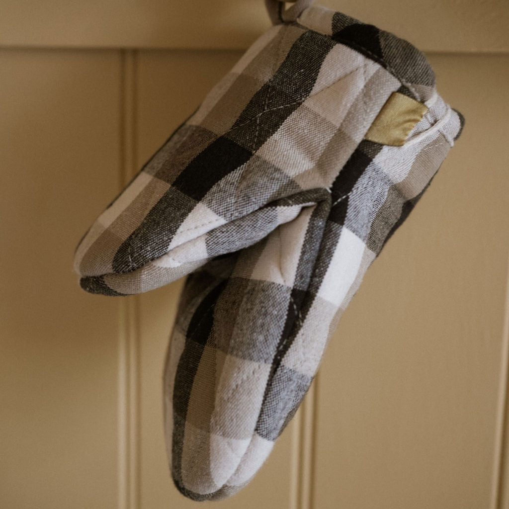 These Half Oven Gloves (or oven mitts) are the perfect kitchen companion, whether you're cooking with gastronomic passion or simply whipping up a quick meal. Featuring a classic double-check pattern in black, they bring both style and function to your kitchen.