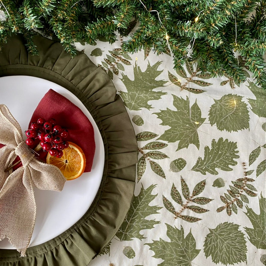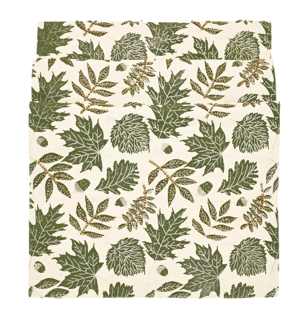The table Runner with beaded leaves is beautifully autumnal and wintery. An easy way to cheer your dining table up for the cosy seasons.
