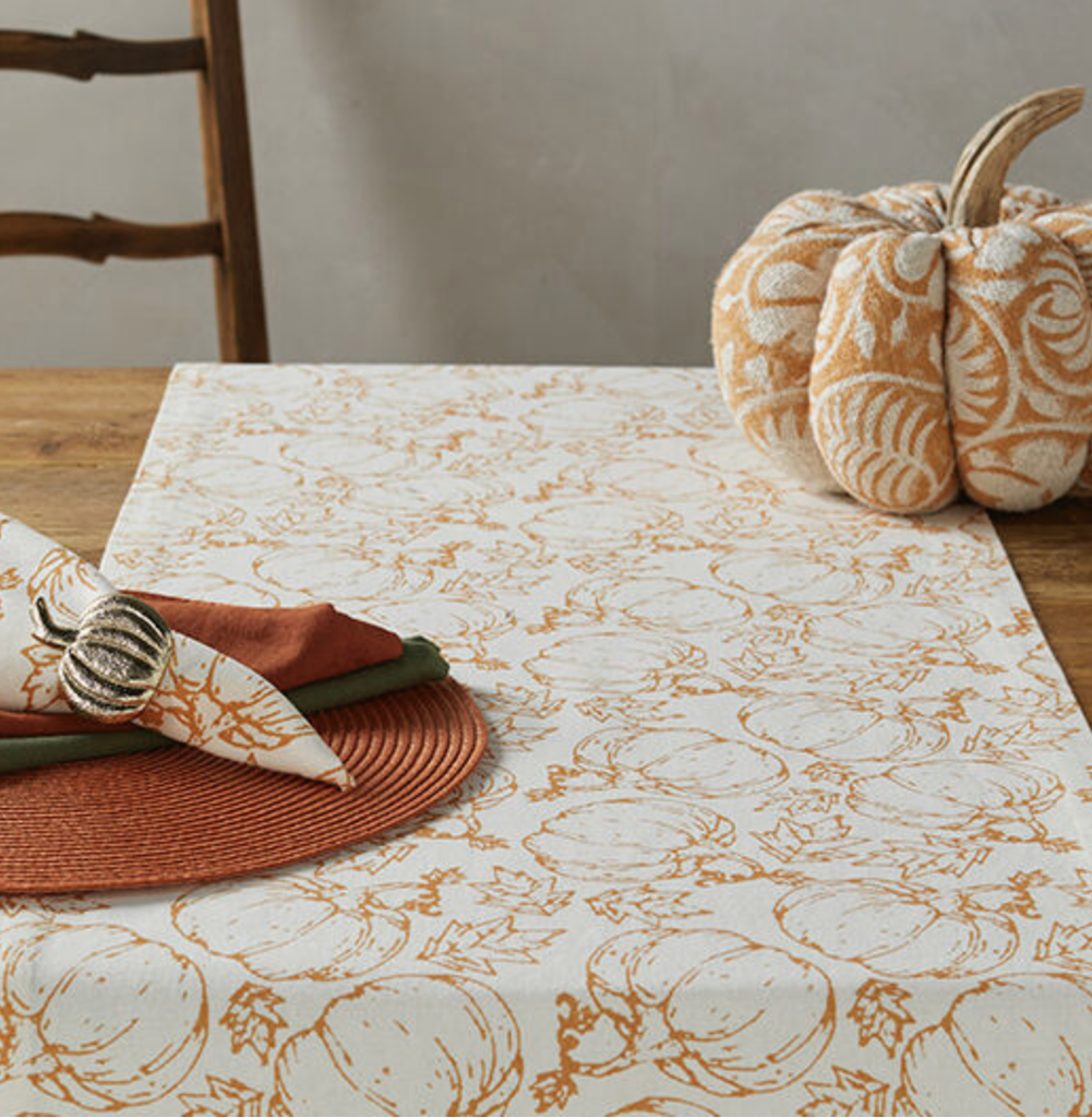 Made from 100% cotton, This autumnal table runner is finished with our pumpkin print and terracotta fringing for a textured effect.An easy way to cheer your dining table up for the cosy seasons.