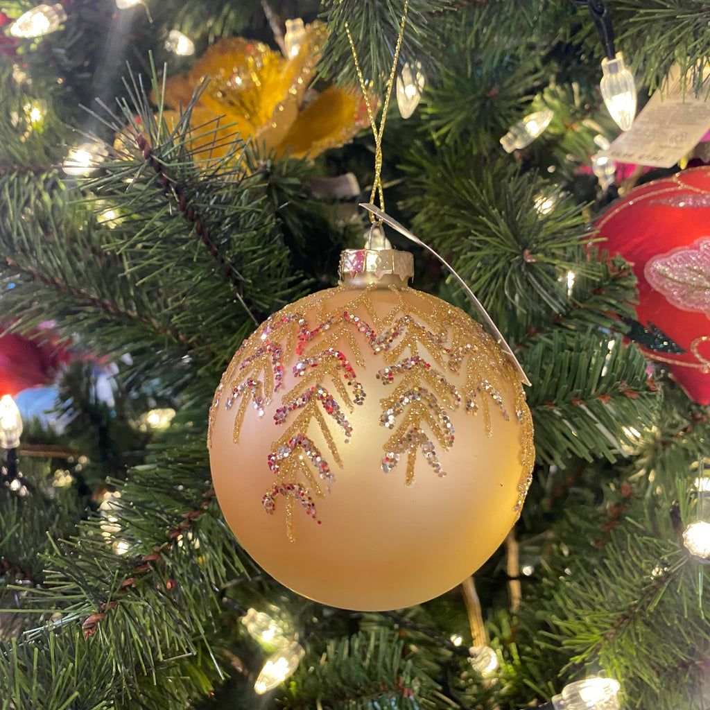 Glass Bauble - Gold Ball, Glitter Branches, 8cm