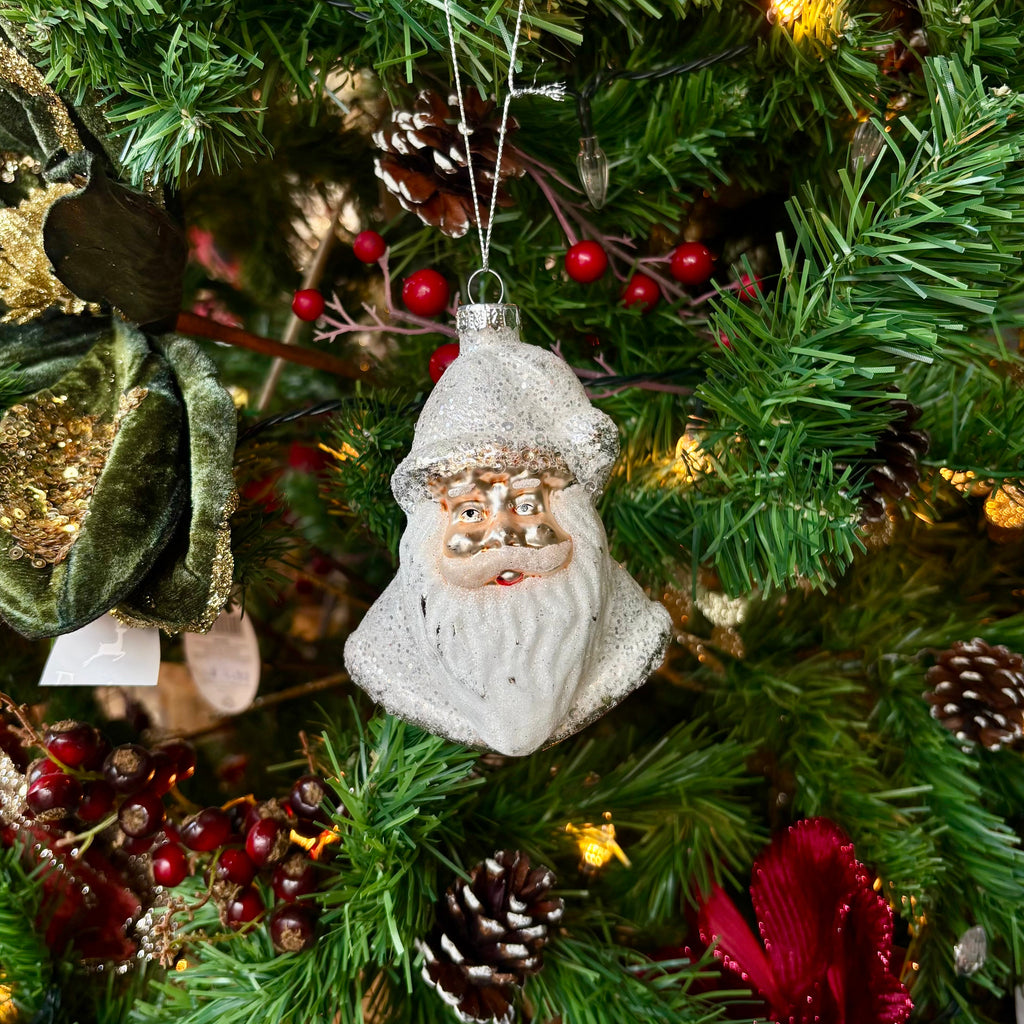 Hanging Dec - White Glass Santa Head