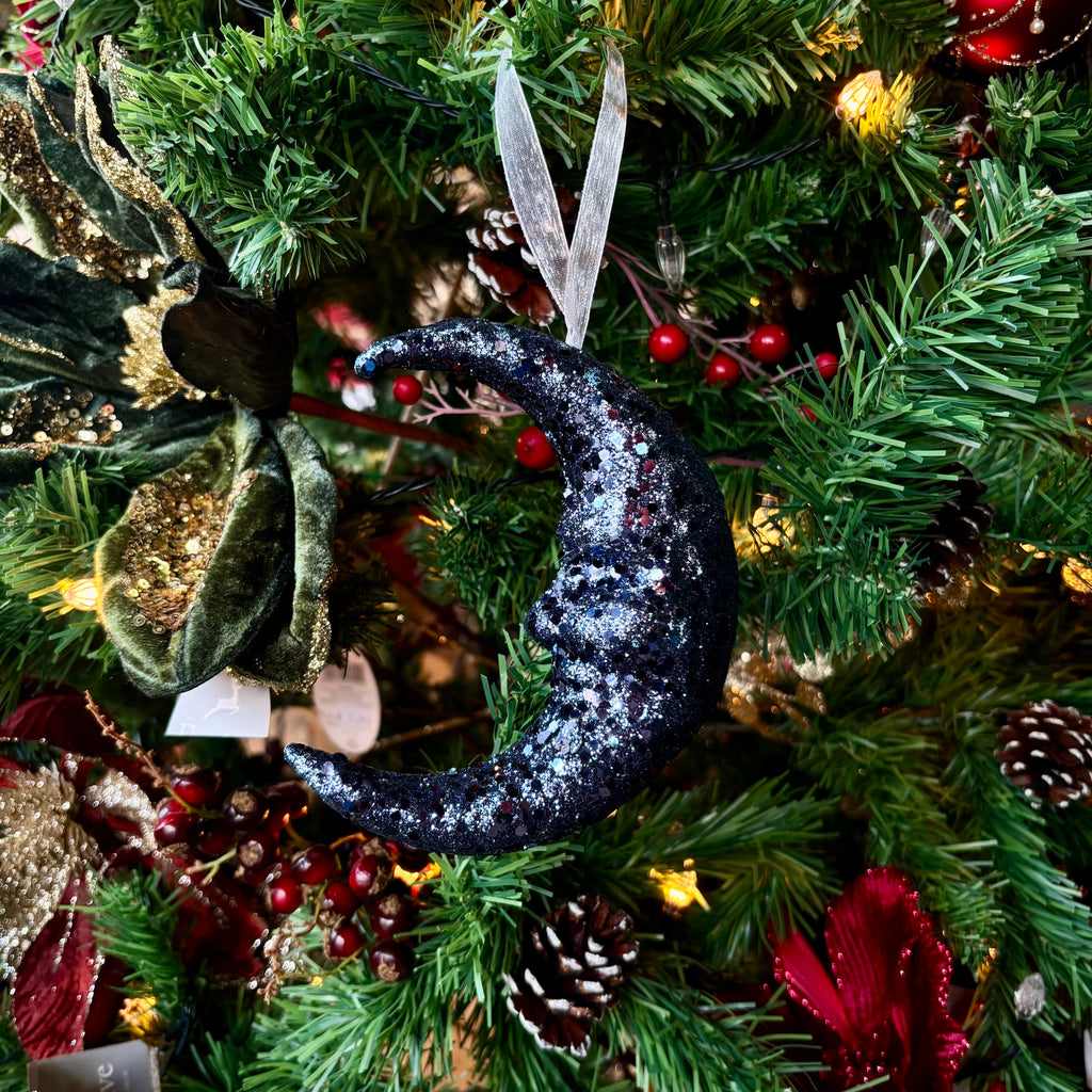 Hanging Dec - Blue Glitter Moon, Small