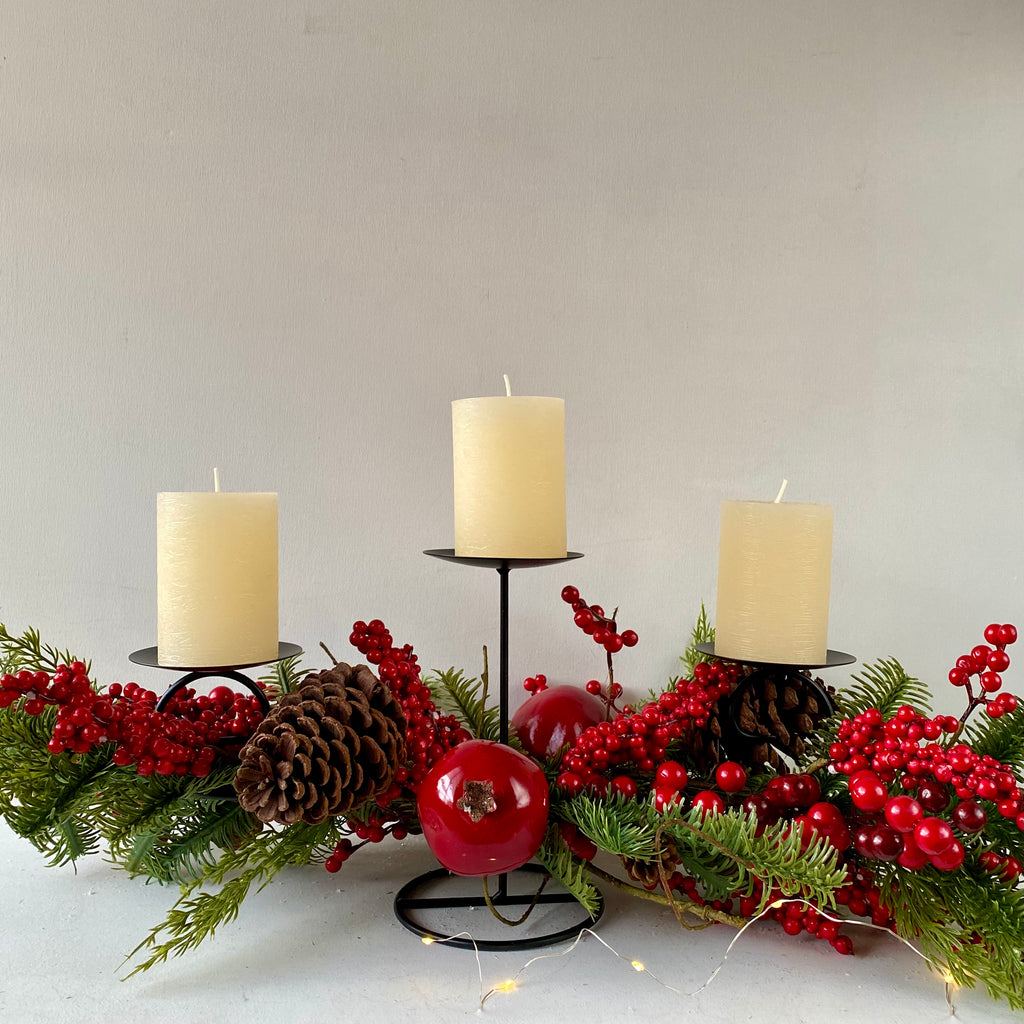 Pinecones & Berries Triple Candle Holder, 76cm