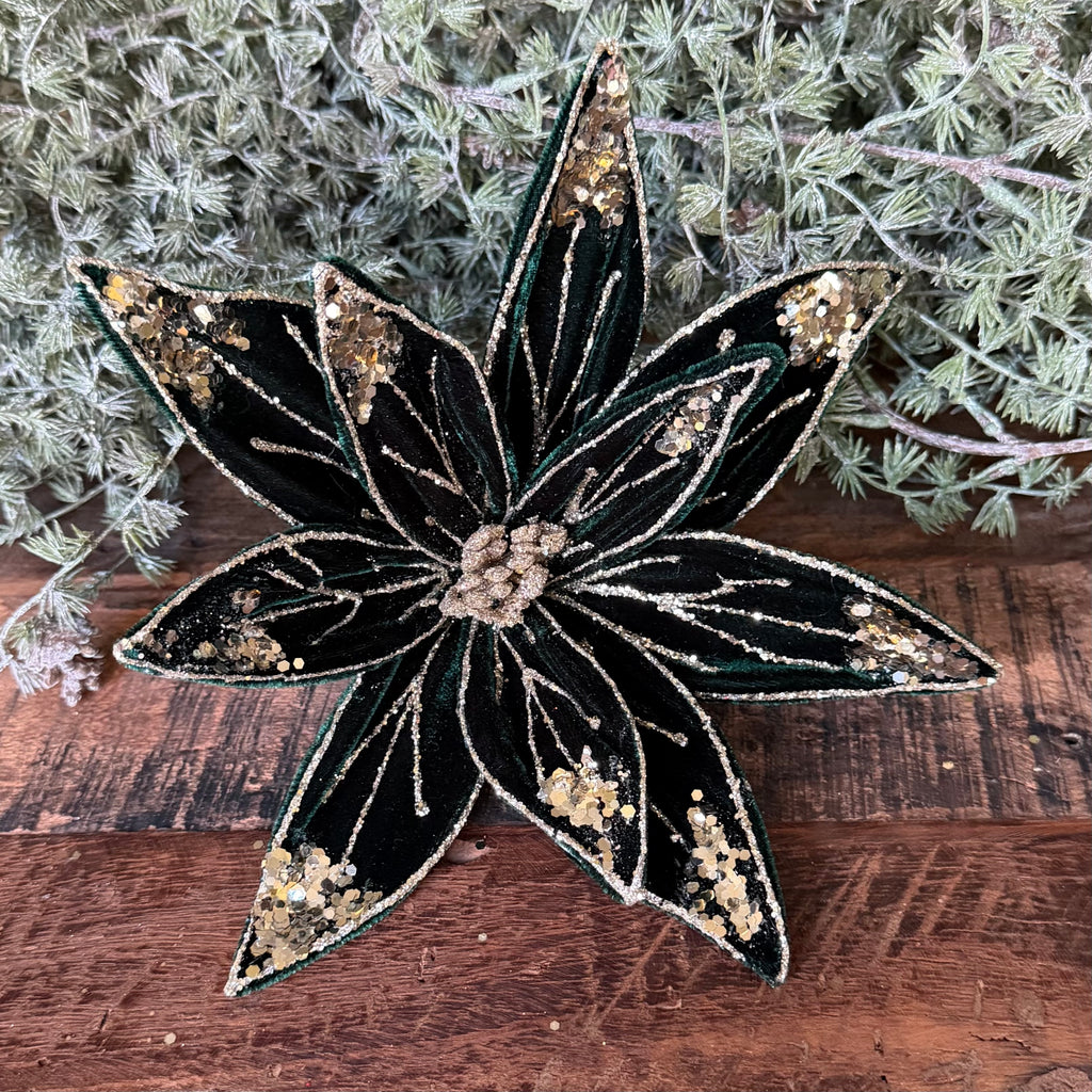Pick - Emerald Green Poinsettia with Sequins, 30cm